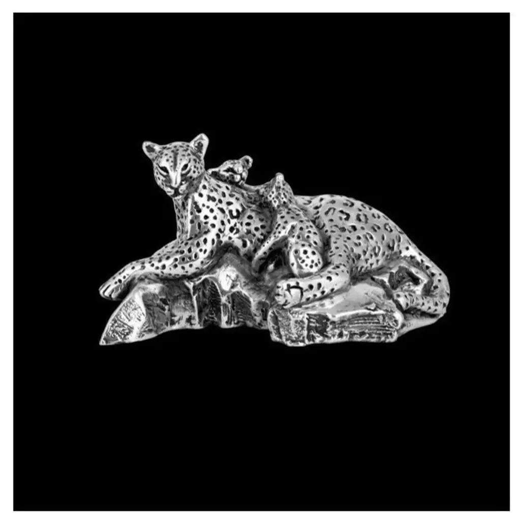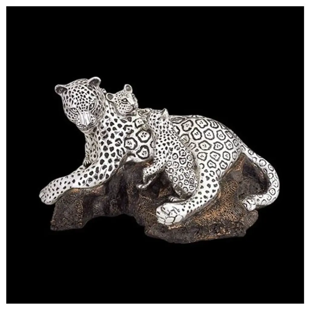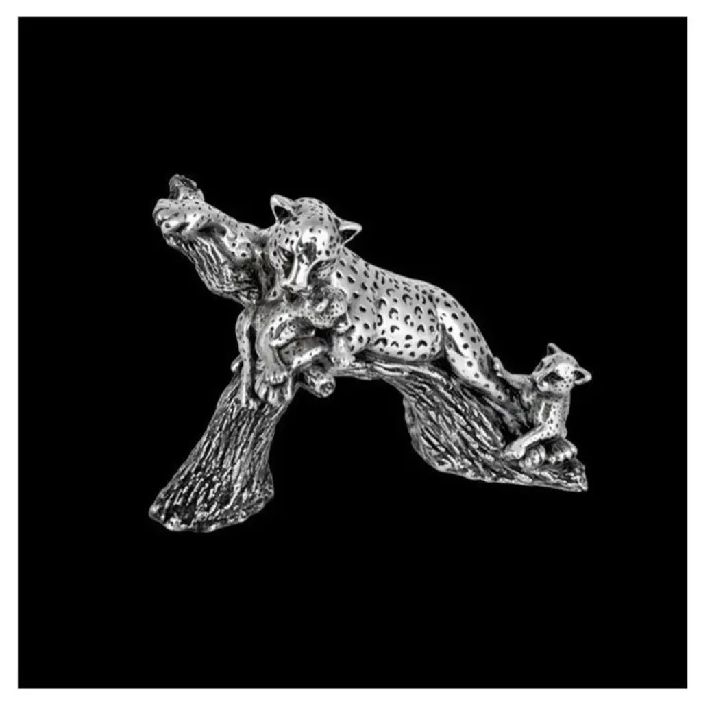 The silver plated leopard resting on branch sculpture by D''Argenta catches this leopard languorously dangling his legs as he rests atop a tree limb. The attention to detail in this piece is evident in the leopards beautifully spotted coat and intricate detail given to the bark of the tree limb. This peaceful sculpture will certainly ornament any room in your home. This Silver Elegance sculpture is one of many offered by D''Argenta. Weight: approx. 6 lbs. About D''Argenta Silver EleganceOrnate in design, exquisite in detail, and beautifully elegant, the Sterling Silver Plated products created by the artists of D''Argenta Silver Elegance are the perfect heirloom quality pieces for any home. The distinctive sterling silver designs stand out against the black neillo inlay and the intricate detail is breathtakingly attractive. D''Argenta Silver Sculptures and objects d''art offer unparalleled excellence in quality and exquisite attention to detail, because they are the hallmarks that have established D''Argenta as a leader in the export of precious metal-finished art for over a quarter of a century. Each of the over 200 limited-edition sculptures, personally signed by the artist, is technically flawless yet competitively priced..the same master-craftsmanship received in pieces that have been gifted to royalty, heads of state and the Vatican. From the surface detail of the innumerable tumuli and broad swells that impart the hides of the elephant collection to the graceful lines that capture the motion of a stallion''s gallop, you will marvel at the beauty of your truly unique acquisition as it graces a special place in your home. Historically, sculptures composed of precious metals were crafted using the traditional hot casting process. 25 years ago, the artisans at renowned metal art company D''Argenta introduced an advanced new metalworking technique that changed the way precious metals are sculpted. D''Argenta''s new method combined cold casting and electroforming to create intricate, finely detailed sculptures. The pieces are initially plated with a . 015 inch (400 micro) thick layer of copper, then plated with silver or (24K) gold at a thickness of . 001 inch (24 micro). Each sculpture''s interior is composed of a polyester fiberglass core that strengthens sleek metal plating. After being formed, each piece is coated with a protective lacquer to prevents tarnishing and maintain luster. This final step ensures that all D''Argenta sculptures, though crafted with fine silver, do not require polish or any type of metal cleaner and can be simply dusted with a dry cloth as needed. Exported around the world and now available in over 25 countries, D''Aragenta''s products have won international acclaim because of their innovative construction and exquisite beauty. In 1981, D''Argenta was recognized with the Bulgarian Government Gold Medal award. In 1992, a D''Argenta sculpture was gifted to His Royal Highness Prince Naruhito of Japan on a visit to Mexico. A nod to the company''s exclusive prestige, D''Argenta sculptures have been gifted to an increasingly long list of dignitaries, including Pope John Paul II, Prince Phillip of England, and his Majesty King Harald of Norway. The gifted artists of D''Argenta include: Manuel Alvarado, Ricardo Del Rio, Enrique Jolly, Javier Arenas Perez, Claudio Rodr