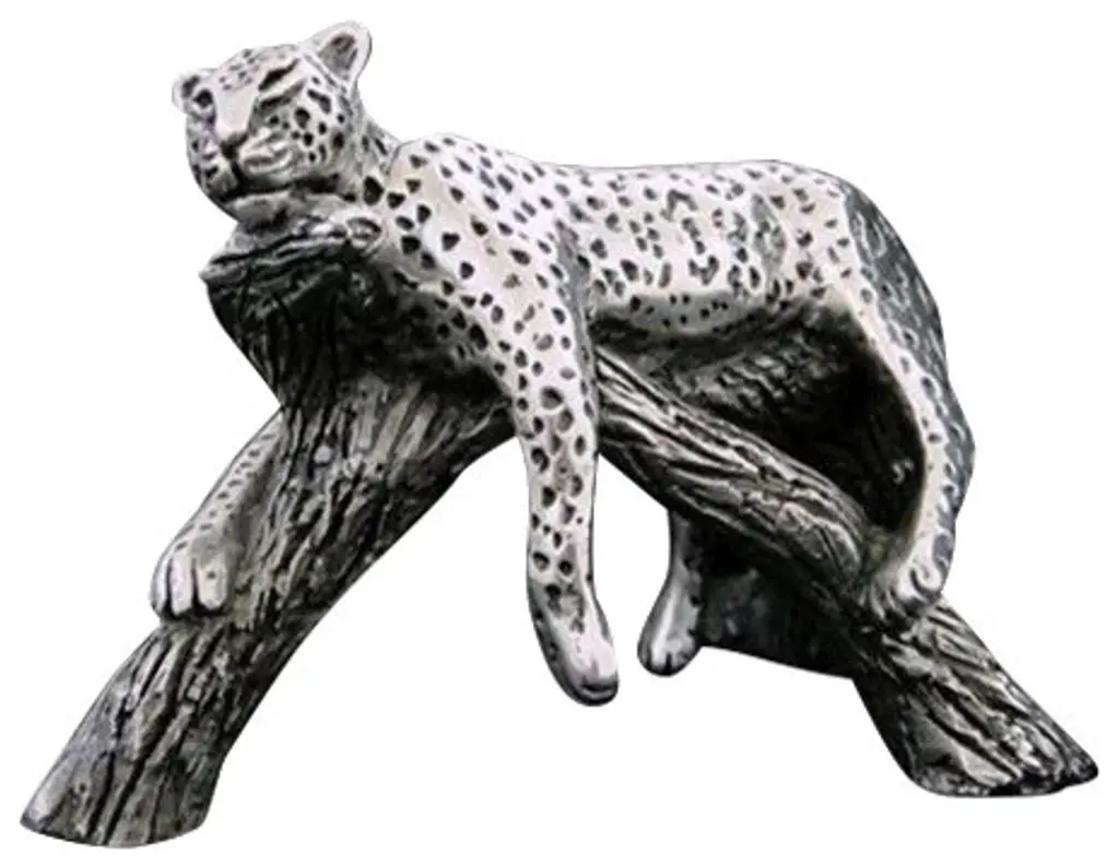 Silver Sculpture Leopard Resting On Branch A506