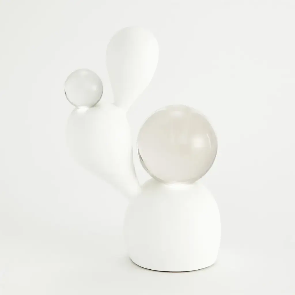 The Meringue Sculptures are whimsical pieces of art constructed of plaster with a white finish and crystal spheres. From a fashion forward perspective, Global Views offers accessories, furniture, statement lighting, and an assortment of rugs and mirrors to add beauty and joy to your home.