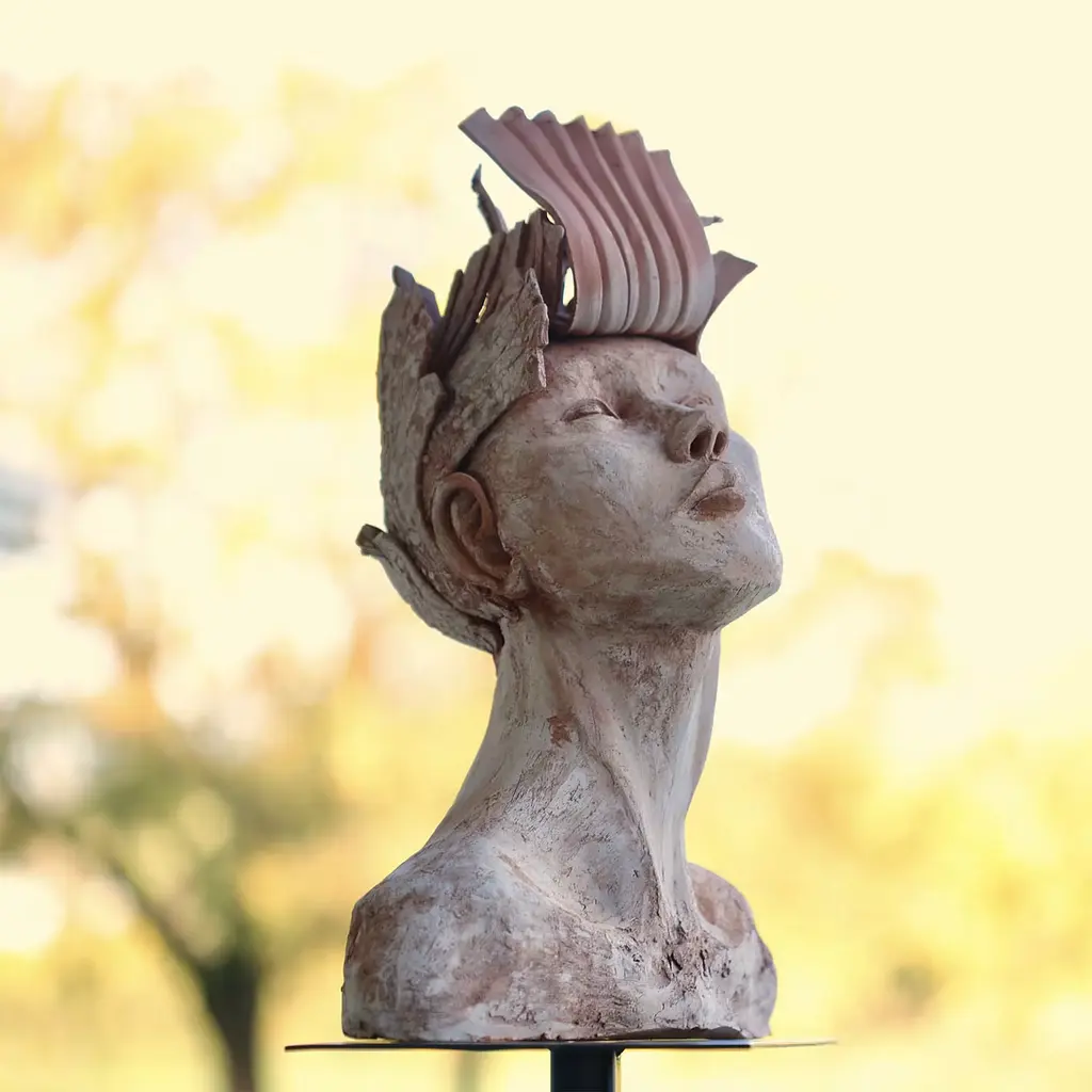 This sculpture embodies a unique expression of artistry, featuring stylized wings that signify the pursuit of dreams and the liberation from limitations. Crafted using galestro, this exceptional piece showcases interesting saline efflorescences that emerge during the firing process, adding captivating texture and depth. This artwork is perfect for any modern or contemporary setting. Its thoughtful style makes it not only a decorative element but also a source of inspiration.