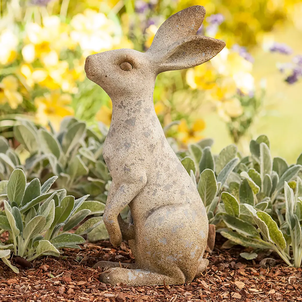 Add our Short Sitting Bunny Sculpture to your garden and visitors are sure to remark, "There's a hare over there!" Cast in resin from a beautiful original sculpt, this garden statue captures a rabbit in a realistic alert pose. His weather-resistant construction ensures years of enjoyment wherever you place him. A very natural addition to any garden or woodland path.