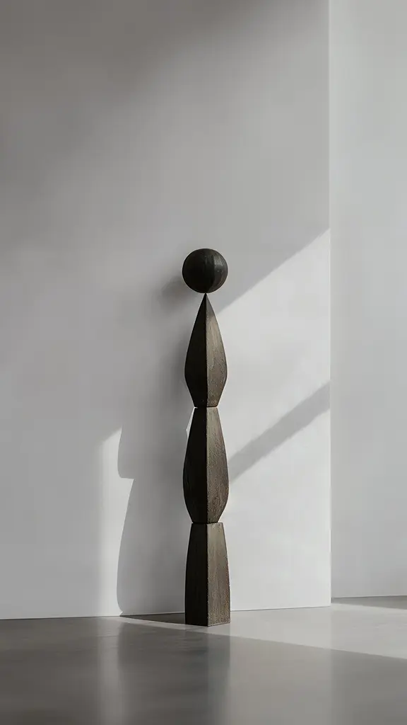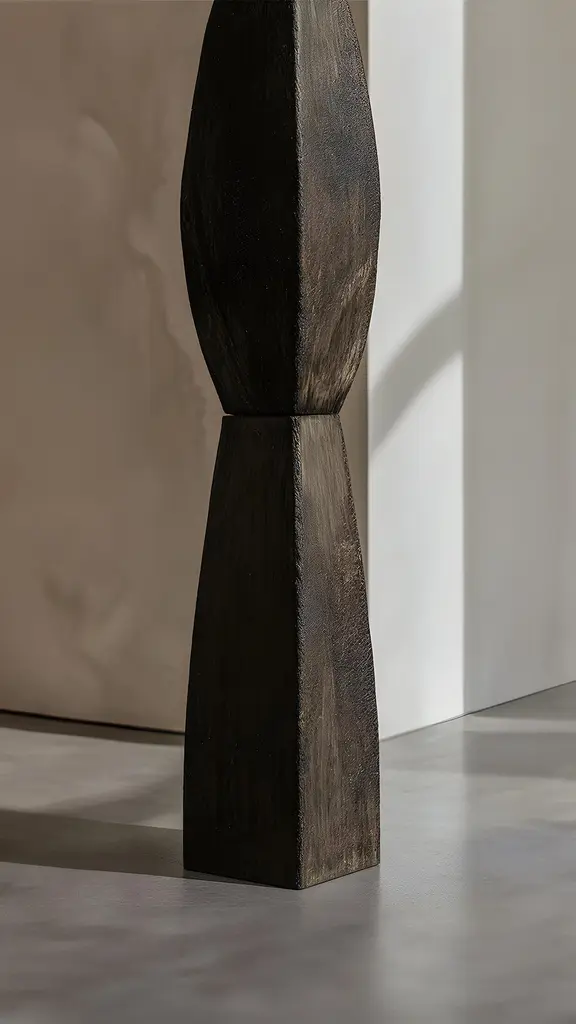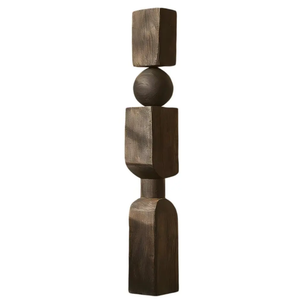 Sleek Abstract Sculpture In Burned Oak, Still Stand No82 By Nono
