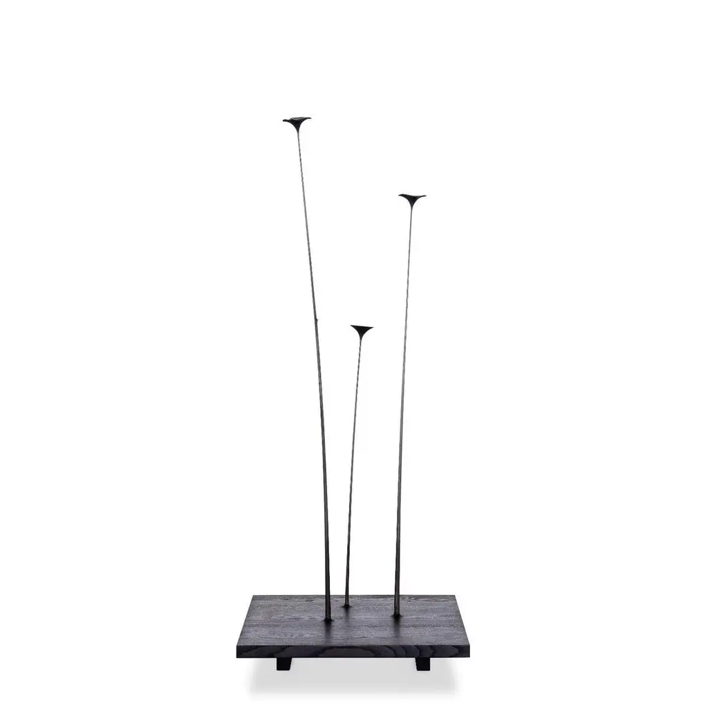 Small Fiori sculptures by Antrei HartikainenMaterials: Flowers (Linden wood), baseplate (Ash/maple)Dimensions: W 60 x D 60 x H 150 - 170 cmThe Fiori sculpture composes of slender-stemmed wooden flowers, which variously grouped, capture the moment of calm and freedom sometimes experienced in nature. Each flower is handcrafted using a variety of techniques. The sculpture can perform many roles: a sole sculpture tenderly comfortable in its loneliness or a group of sculptures growing into a striking group as an eyecatcher in a space. It lives with the changing demands of its environment.Antrei Hartikainen is a master cabinetmaker and designer from finland known for his exquisite works in wood. The award- winning pieces, including functional products and pure art works, achieve heights of sensuality, elegance and craftsmanship. These important factors are emphasized in Antrei Hartikainen’s work, which constantly seeks to Challenge and blur the traditional categorizations between functional objects and visual arts. Hartikainen’s sculptural approach can be studied through his organic body of work, which simultaneously highlights the inspiration drawn from his material of choice, wood. Antrei hartikainen has shown his works in numerous solo and group exhibitions all over the world . Antrei have been awarded with prize as a Young Designer of the Year 2018 in Finland and shortlisted as Emerging Designer of the Year 2019 by Dezeen awards.