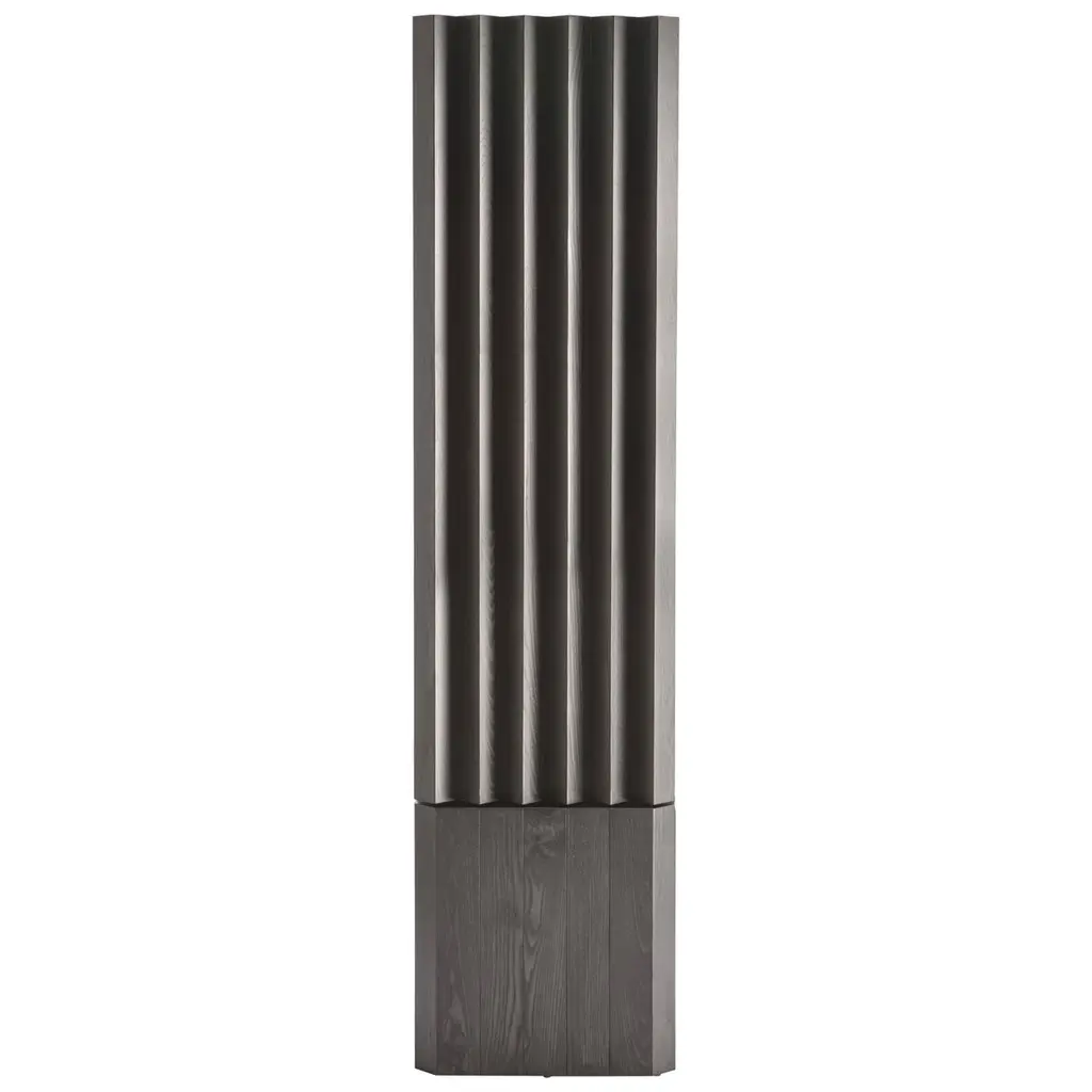 The Kinsey sculpture boasts a unique ridged design on a cylindrical frame, coated in a slate black finish. A rectangular iron base helps balance the statue wherever it is placed. This abstract accessory is the perfect choice for any minimalist, modern, or transitional setting. Available in three size options, making it a great addition to any commercial or residential design plan, as a standalone or a trio for a more impactful display.