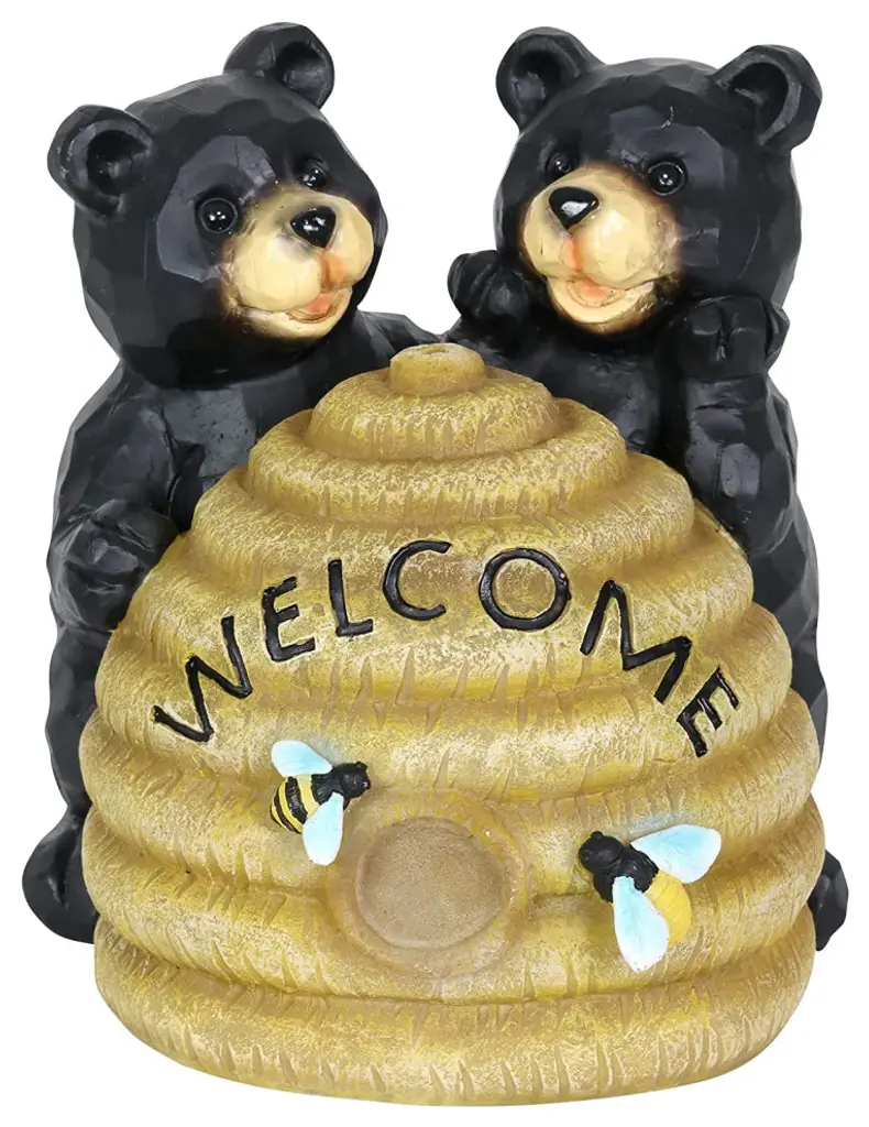 Features:- BEE HIVE WELCOME SIGN: This 8"� tall beehive garden decor is a whimsical way to welcome people to your home! The bee statue welcome home decoration is hand painted and comes with solar powered LED lights for a cute night-time glow. Our porch welcome sign is also made of durable, weather-resistant resin which can endure any season.- SOLAR POWERED LIGHTS: This bear solar statue adds an instant glowing charm to your garden or porch. The bees and hive on this welcome sign for front door will automatically illuminate at dusk to give you hours of light to your outdoor garden. Show off your quirky side with our beautiful bear garden décor!- HAND PAINTED & MADE-TO-LAST: Outdoor bear statue features artisan craftsmanship like no other. Every aspect of these garden bear statues are traditionally hand painted, UV-treated (meaning the sun won"™t fade it), & made from a durable resin that can endure any weather condition.- GREAT GIFT IDEA FOR BEAR LOVERS: Our bear & bee decor is a cute gift that makes an ideal housewarming gift or birthday gift. That"™s right, this welcome bear is sure to make that bear lovers or bee lovers in your life smile! Order them our beehive home decor, today!