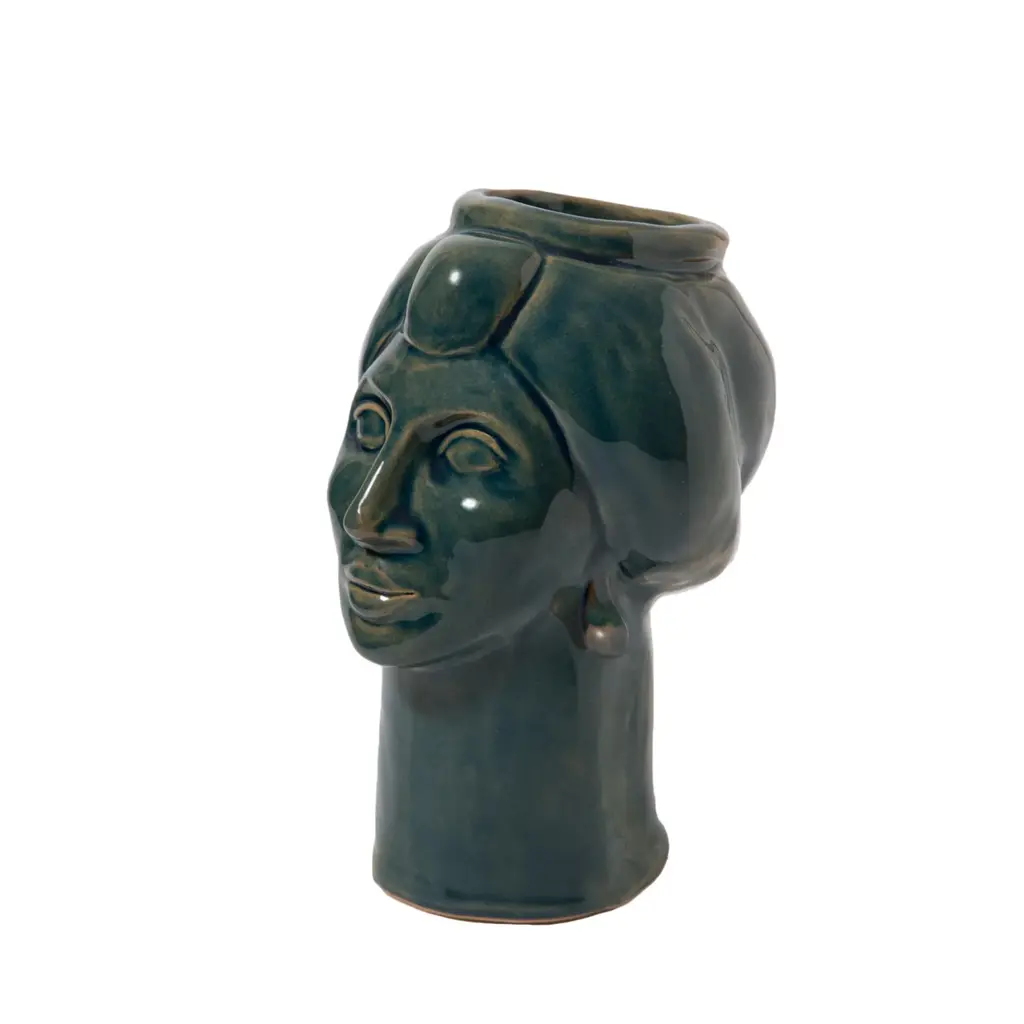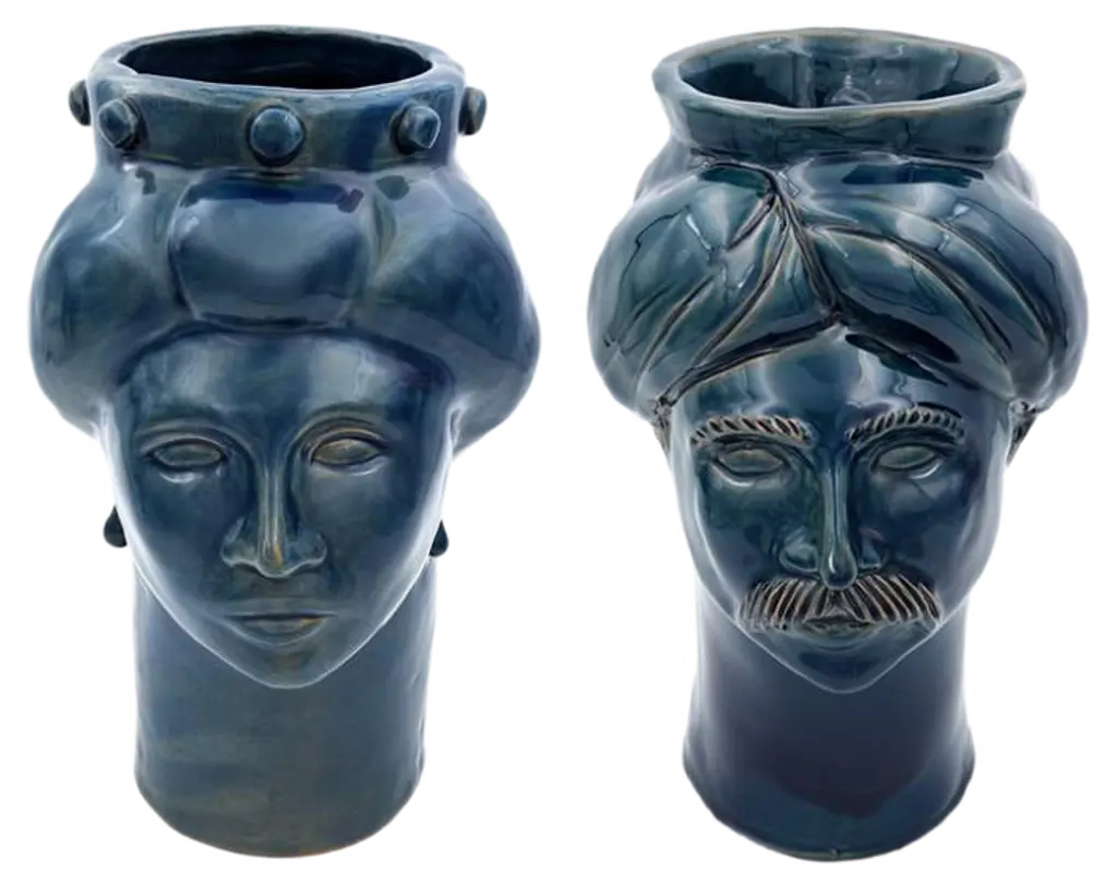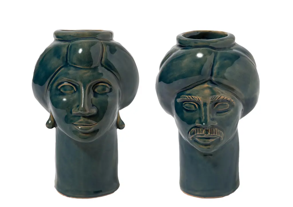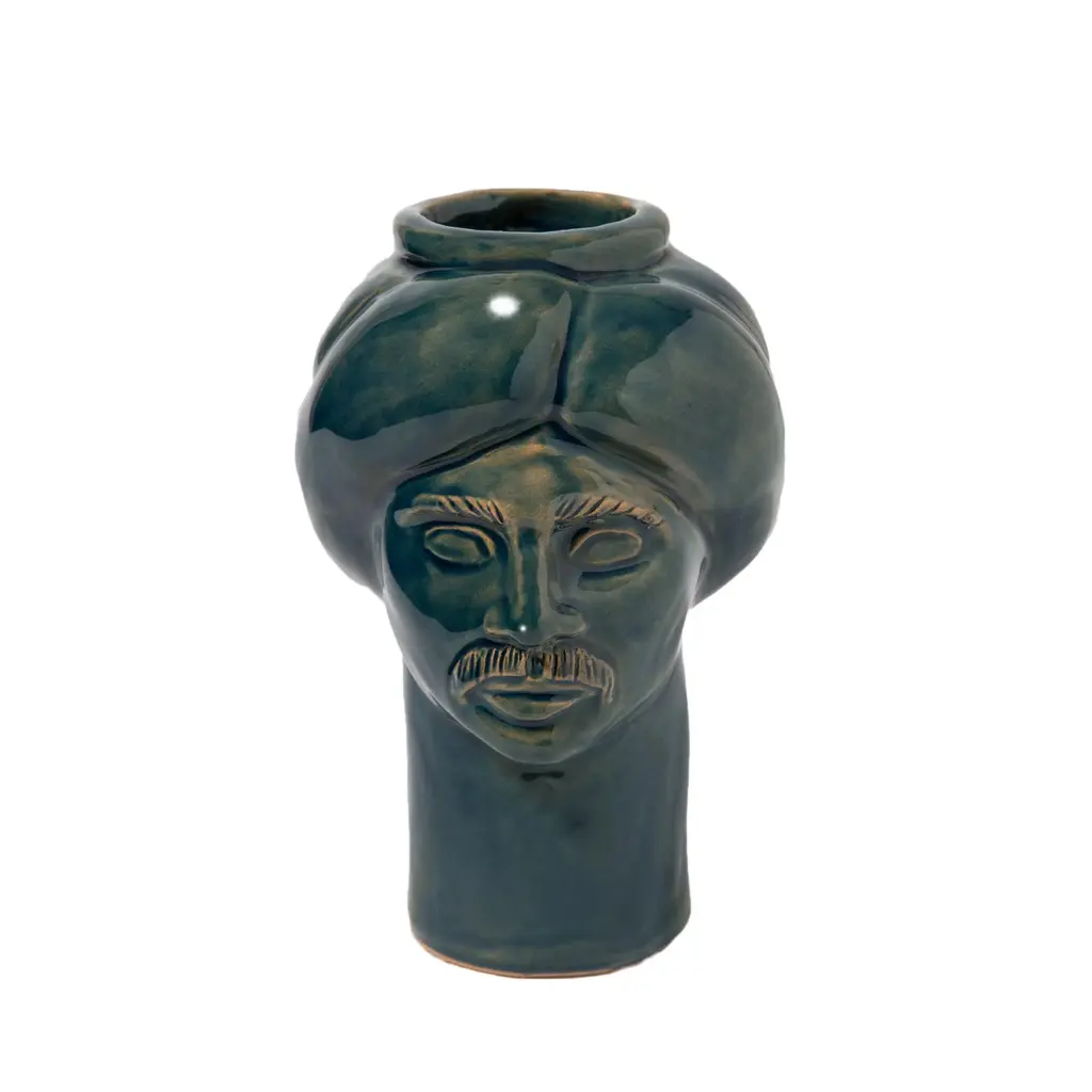 Also in this reduced version of our heads, we sought the right balance of textures and colors. Our couple, representing suleiman the magnificent, sultan of the ottoman empire, and his wife roxelana, stands out for its elegant design, purity of lines and captivating colors; always present in our creations. The voluminous turbans of suleiman and roxelana, their proud features and their symmetries, create two sculptures that communicate with each other. This pair will know how to enrich the house with its contained forms that never give up the beauty and the elegance of the shapes. Details & dimensions • material: ceramics • dimensions (in): w 7.09 x d 7.09 x h 7.87 • dimensions (cm): w 18 x d 18 x h 20 • handmade in italy