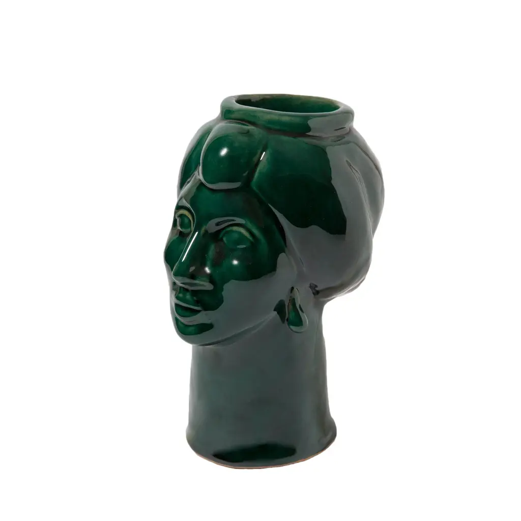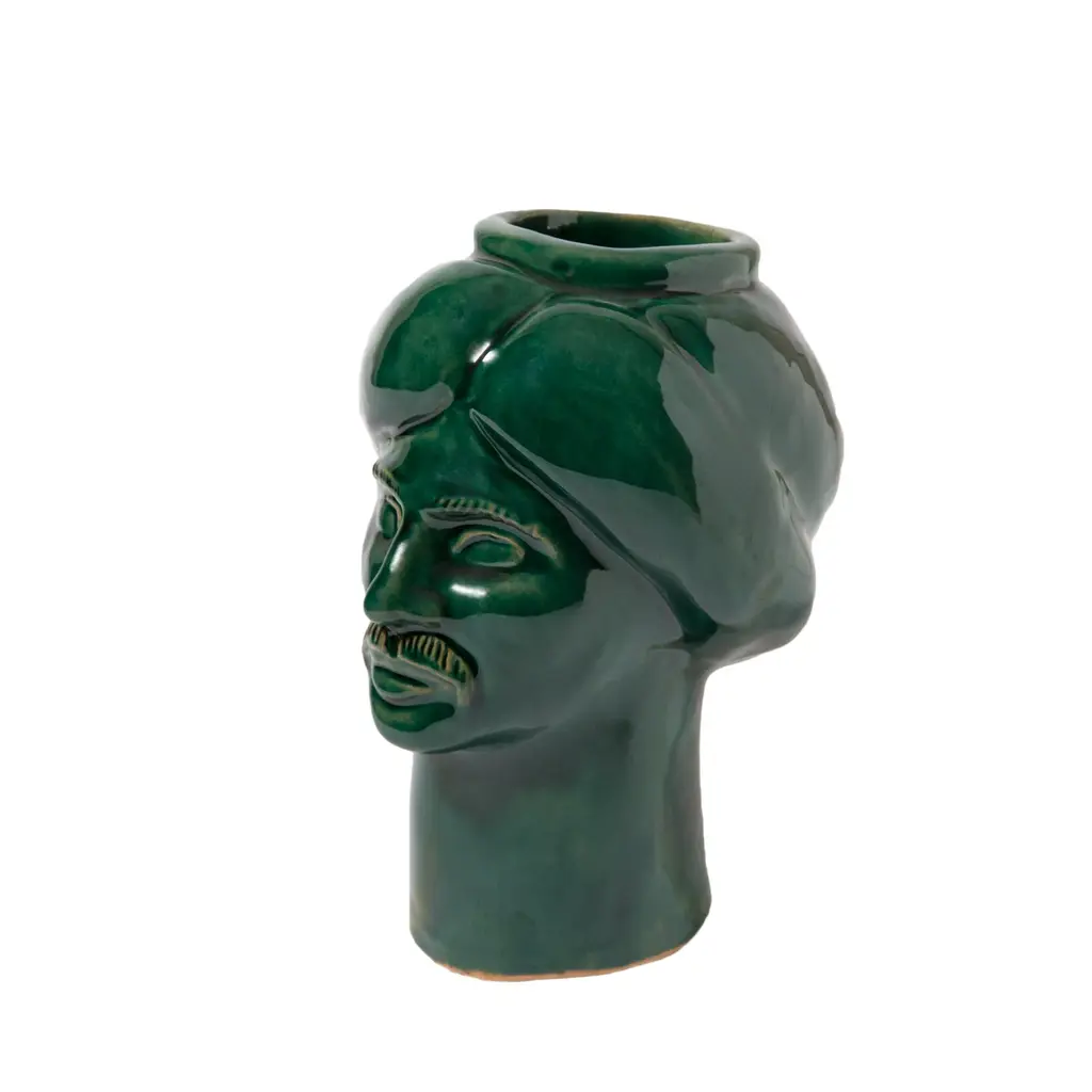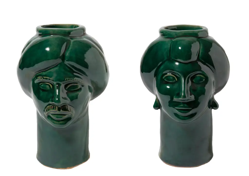 Also in this reduced version of our heads, we sought the right balance of textures and colors. Our couple, representing suleiman the magnificent, sultan of the ottoman empire, and his wife roxelana, stands out for its elegant design, purity of lines and captivating colors; always present in our creations. The voluminous turbans of suleiman and roxelana, their proud features and their symmetries, create two sculptures that communicate with each other. This pair will know how to enrich the house with its contained forms that never give up the beauty and the elegance of the shapes. Details & dimensions • material: ceramics • dimensions (in): w 7.09 x d 7.09 x h 7.87 • dimensions (cm): w 18 x d 18 x h 20 • handmade in italy