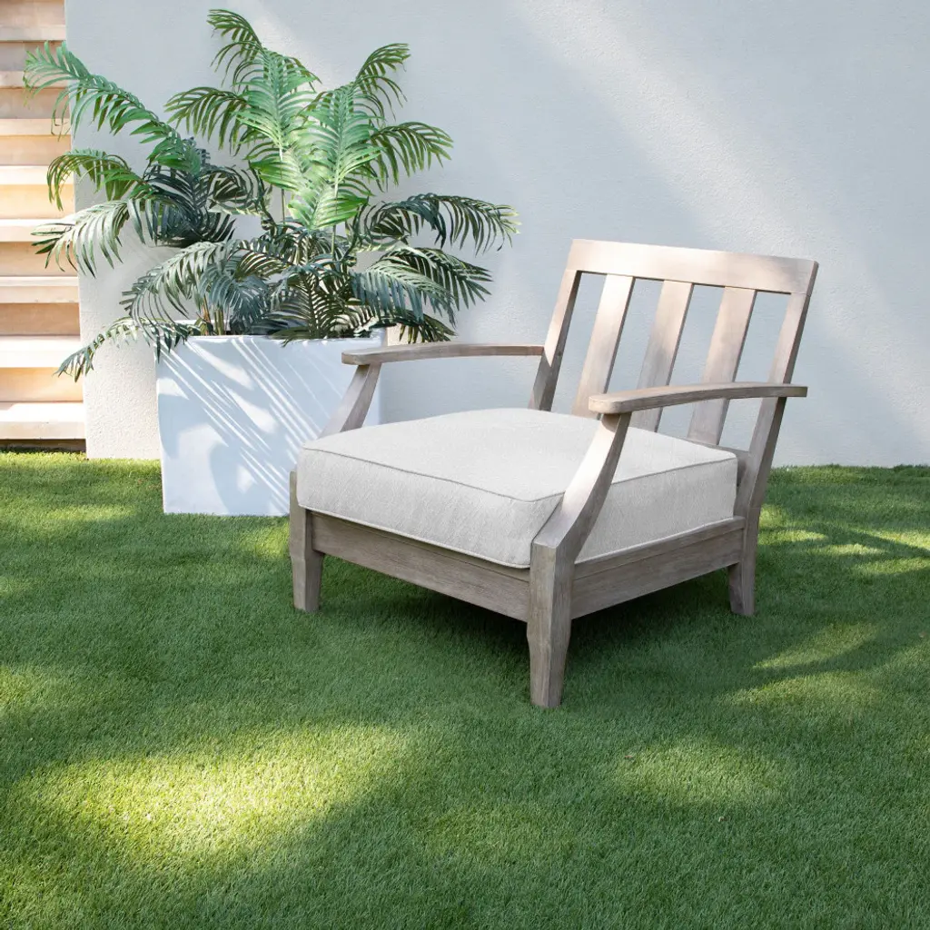 Step out on your porch or patio and start brightening it up with this beautiful new chair cushion! Featuring a stunning fabric, this cushion will instantly enhance your space and help you comfortably enjoy the outdoors! Crafted out of a performance material right here in North America, this chair cushion is made to withstand the sun, rain and even stains so that all you have to do is sit back and relax! Sunbrella is founded on the belief that fabrics should be both beautiful and functional. We began in the 1960s with the challenge of creating an awning canvas with a substantially longer lifespan than cotton. Sunbrella has become widely adopted for shade structures, marine canvas and upholstery fabric for both outdoor and indoor applications.Our textiles are made with close attention to design detail, and engineered with robust performance characteristics that provide resistance to fading and degradation from sunlight and chemical exposure. The fabric is tactile yet durable, has industry-leading environmental characteristics, is easy to care for and offers long life wherever it''s used.No Sunbrella manufacturing facility in the world sends waste to landfills. A result of our focus on efficiency, this monumental achievement allows Sunbrella to lead by example, putting sustainability into practice every day across the globe. Our unique coloring process not only makes Sunbrella fabrics fade-resistant, it also conserves more water than conventional dyeing processes. At Sunbrella we believe it''s important to preserve the environment around our facilities. We work to conserve the plant and animal life that is native to the area and encourage our employees to plant gardens designed to provide fresh food and nourish local wildlife.We stand behind our fabrics with a guarantee that''s the best in the industry: a 5-year limited warranty for upholstery. This warranty protects the original purchaser of Sunbrella fabric. This warranty protects against Sunbrella fabric becoming unserviceable due to color or strength loss from normal usage and exposure conditions, including sunlight, mildew and atmospheric chemicals.• Ideal for casual indoor and outdoor use• Includes one (1) deep seating cushion• Cushion cover can be removed for easy cleaning• Available in a variety of sizes and colors to ensure that you find the perfect match for your furniture• Cushion only. Furniture not included.• • Made in North America•