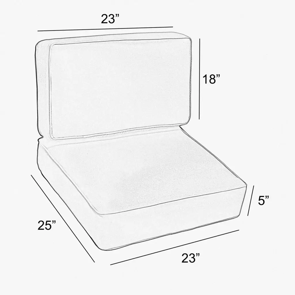 Slow down and take a breath of fresh air with the help of this luxurious chair cushion set! Featuring a gorgeous fabric, this cushion set will update your outdoor space and give you that place of relaxation you desperately need! Crafted out of a performance material right here in North America, this chair cushion set is built to withstand sun, stains, and all other outdoor elements. Sunbrella is founded on the belief that fabrics should be both beautiful and functional. We began in the 1960s with the challenge of creating an awning canvas with a substantially longer lifespan than cotton. Sunbrella has become widely adopted for shade structures, marine canvas and upholstery fabric for both outdoor and indoor applications.Our textiles are made with close attention to design detail, and engineered with robust performance characteristics that provide resistance to fading and degradation from sunlight and chemical exposure. The fabric is tactile yet durable, has industry-leading environmental characteristics, is easy to care for and offers long life wherever it''s used.No Sunbrella manufacturing facility in the world sends waste to landfills. A result of our focus on efficiency, this monumental achievement allows Sunbrella to lead by example, putting sustainability into practice every day across the globe. Our unique coloring process not only makes Sunbrella fabrics fade-resistant, it also conserves more water than conventional dyeing processes. At Sunbrella we believe it''s important to preserve the environment around our facilities. We work to conserve the plant and animal life that is native to the area and encourage our employees to plant gardens designed to provide fresh food and nourish local wildlife.We stand behind our fabrics with a guarantee that''s the best in the industry: a 5-year limited warranty for upholstery. This warranty protects the original purchaser of Sunbrella fabric. This warranty protects against Sunbrella fabric becoming unserviceable due to color or strength loss from normal usage and exposure conditions, including sunlight, mildew and atmospheric chemicals.• Ideal for casual indoor and outdoor use• Includes one (1) back cushion and one (1) seat cushion• Cushion cover can be removed for easy cleaning• Available in a variety of sizes and colors to ensure that you find the perfect match for your furniture• Cushions only. Furniture not included.• • Made in North America•