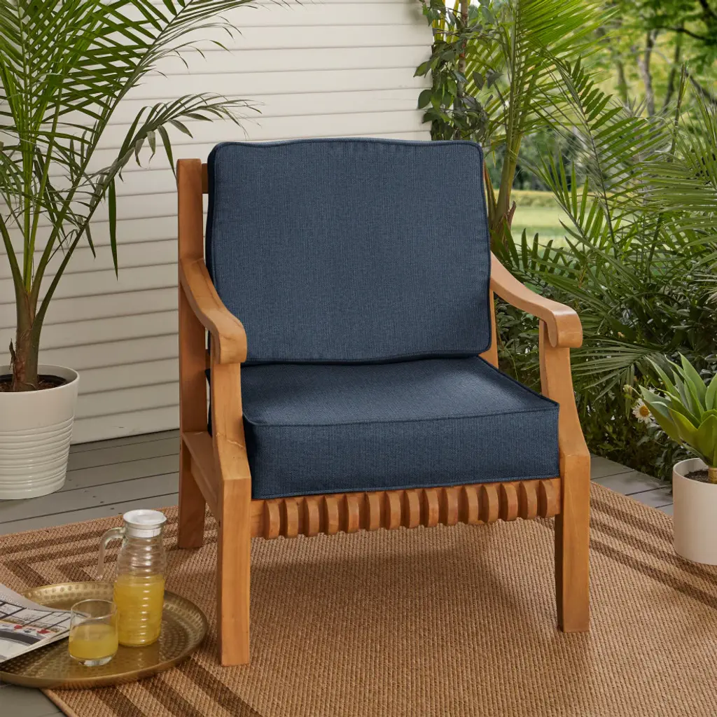 Slow down and take a breath of fresh air with the help of this luxurious chair cushion set! Featuring a gorgeous fabric, this cushion set will update your outdoor space and give you that place of relaxation you desperately need! Crafted out of a performance material right here in North America, this chair cushion set is built to withstand sun, stains, and all other outdoor elements. Sunbrella is founded on the belief that fabrics should be both beautiful and functional. We began in the 1960s with the challenge of creating an awning canvas with a substantially longer lifespan than cotton. Sunbrella has become widely adopted for shade structures, marine canvas and upholstery fabric for both outdoor and indoor applications.Our textiles are made with close attention to design detail, and engineered with robust performance characteristics that provide resistance to fading and degradation from sunlight and chemical exposure. The fabric is tactile yet durable, has industry-leading environmental characteristics, is easy to care for and offers long life � wherever it�s used.No Sunbrella manufacturing facility in the world sends waste to landfills. A result of our focus on efficiency, this monumental achievement allows Sunbrella to lead by example, putting sustainability into practice every day across the globe. Our unique coloring process not only makes Sunbrella fabrics fade-resistant, it also conserves more water than conventional dyeing processes. At Sunbrella we believe it�s important to preserve the environment around our facilities. We work to conserve the plant and animal life that is native to the area and encourage our employees to plant gardens designed to provide fresh food and nourish local wildlife.We stand behind our fabrics with a guarantee that�s the best in the industry: a 5-year limited warranty for upholstery. This warranty protects the original purchaser of Sunbrella fabric. This warranty protects against Sunbrella fabric becoming unserviceable due to color or strength loss from normal usage and exposure conditions, including sunlight, mildew and atmospheric chemicals.• Ideal for casual indoor and outdoor use• Includes one (1) back cushion and one (1) seat cushion• Cushion cover can be removed for easy cleaning• Available in a variety of sizes and colors to ensure that you find the perfect match for your furniture• Cushions only. Furniture not included.• • Made in North America•