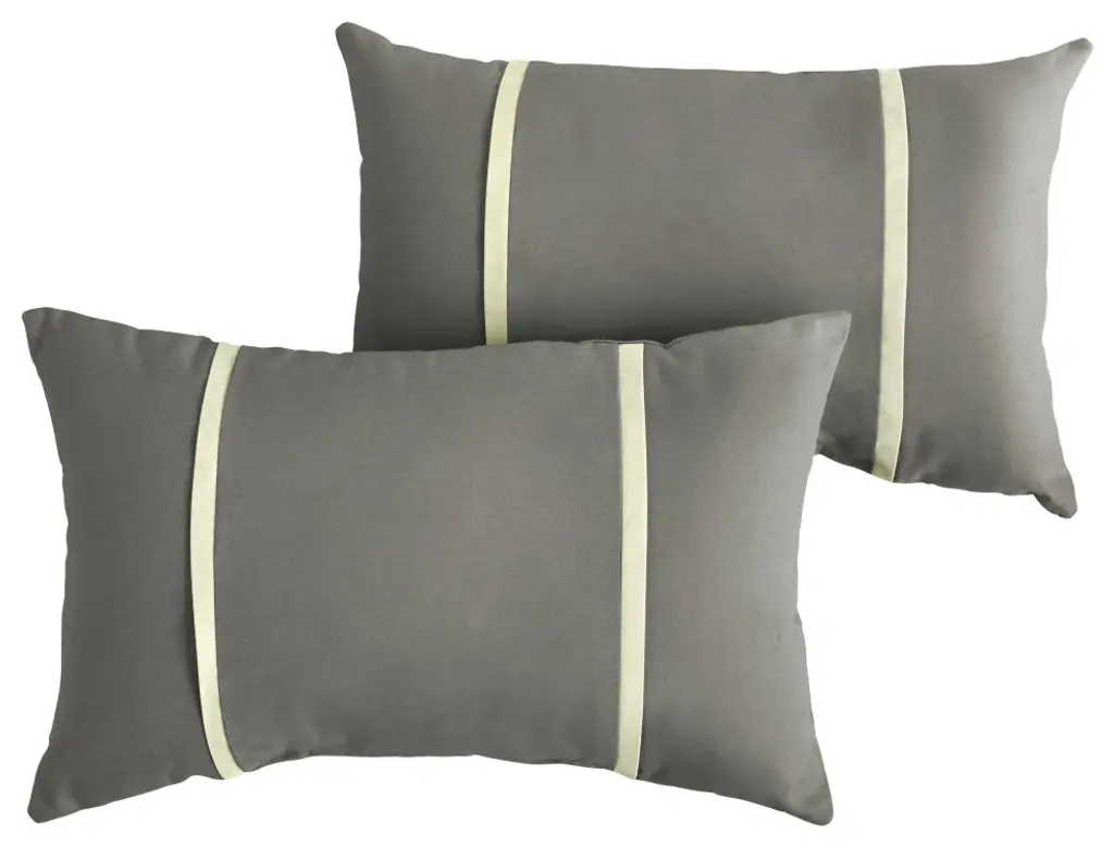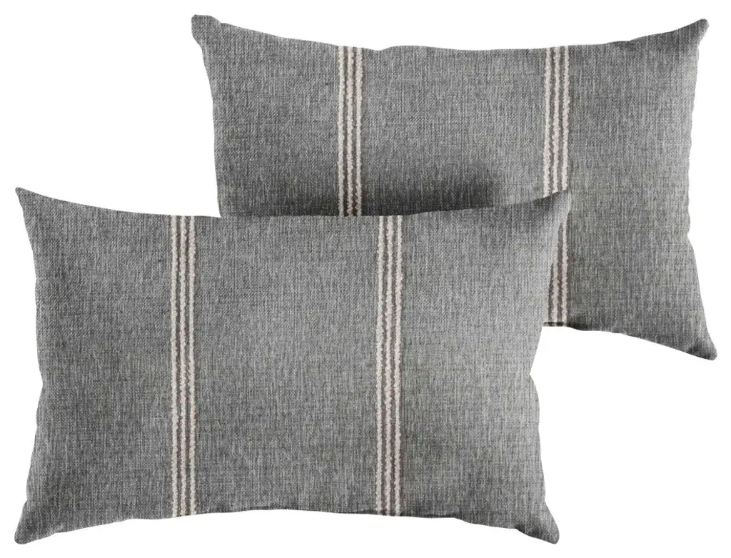 Make the most of your porch or patio by dressing it up with this adorable set of two pillows! Featuring a gorgeous stripe fabric, this pillow set will help style out your space and make you enjoy the outdoors so much more! Crafted out of a performance material right here in North America, these pillows are built to withstand all of the sun, stains and weather that comes your way. Sunbrella is founded on the belief that fabrics should be both beautiful and functional. We began in the 1960s with the challenge of creating an awning canvas with a substantially longer lifespan than cotton. Sunbrella has become widely adopted for shade structures, marine canvas and upholstery fabric for both outdoor and indoor applications.Our textiles are made with close attention to design detail, and engineered with robust performance characteristics that provide resistance to fading and degradation from sunlight and chemical exposure. The fabric is tactile yet durable, has industry-leading environmental characteristics, is easy to care for and offers long life wherever it''s used.No Sunbrella manufacturing facility in the world sends waste to landfills. A result of our focus on efficiency, this monumental achievement allows Sunbrella to lead by example, putting sustainability into practice every day across the globe. Our unique coloring process not only makes Sunbrella fabrics fade-resistant, it also conserves more water than conventional dyeing processes. At Sunbrella we believe it''s important to preserve the environment around our facilities. We work to conserve the plant and animal life that is native to the area and encourage our employees to plant gardens designed to provide fresh food and nourish local wildlife.We stand behind our fabrics with a guarantee that''s the best in the industry: a 5-year limited warranty for upholstery. This warranty protects the original purchaser of Sunbrella fabric. This warranty protects against Sunbrella fabric becoming unserviceable due to color or strength loss from normal usage and exposure conditions, including sunlight, mildew and atmospheric chemicals.• Ideal for casual indoor and outdoor use• Includes two (2) lumbar pillows• • Available in 12x18 in, 12x24 in, 13x20 in, 14x24 in, and 16x26 in sizes• Pillows only. Furniture not included.• • Made in North America•