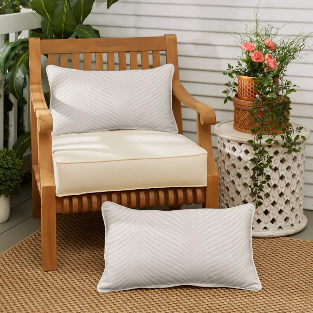 Make the most of your porch or patio by dressing it up with this adorable set of two lumbar pillows! Featuring a gorgeous leaf print fabric in a rich, natural hue, this pillow set will help style out your space and make you enjoy the outdoors so much more! Crafted out of a performance material right here in North America, these pillows are built to withstand all of the sun, stains and weather that comes your way. Sunbrella is founded on the belief that fabrics should be both beautiful and functional. We began in the 1960s with the challenge of creating an awning canvas with a substantially longer lifespan than cotton. Sunbrella has become widely adopted for shade structures, marine canvas and upholstery fabric for both outdoor and indoor applications.Our textiles are made with close attention to design detail, and engineered with robust performance characteristics that provide resistance to fading and degradation from sunlight and chemical exposure. The fabric is tactile yet durable, has industry-leading environmental characteristics, is easy to care for and offers long life wherever it''s used.No Sunbrella manufacturing facility in the world sends waste to landfills. A result of our focus on efficiency, this monumental achievement allows Sunbrella to lead by example, putting sustainability into practice every day across the globe. Our unique coloring process not only makes Sunbrella fabrics fade-resistant, it also conserves more water than conventional dyeing processes. At Sunbrella we believe it''s important to preserve the environment around our facilities. We work to conserve the plant and animal life that is native to the area and encourage our employees to plant gardens designed to provide fresh food and nourish local wildlife.We stand behind our fabrics with a guarantee that''s the best in the industry: a 5-year limited warranty for upholstery. This warranty protects the original purchaser of Sunbrella fabric. This warranty protects against Sunbrella fabric becoming unserviceable due to color or strength loss from normal usage and exposure conditions, including sunlight, mildew and atmospheric chemicals.• Ideal for casual indoor and outdoor use• Includes two (2) lumbar pillows• • Available in a variety of sizes and colors to ensure that you find the perfect match for your furniture• Pillows only. Furniture not included.• • Made in North America•