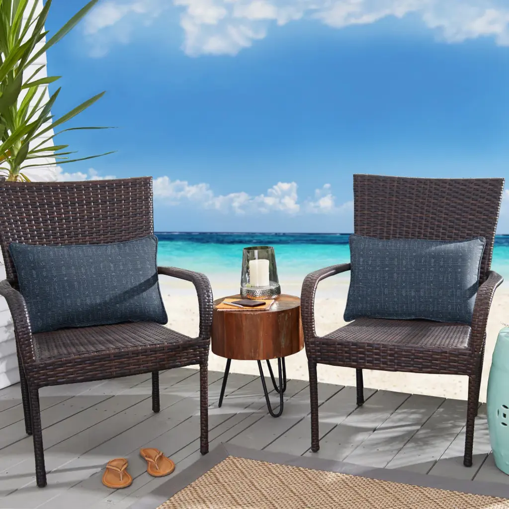 Make the most of your porch or patio by dressing it up with this adorable set of two lumbar pillows! Featuring a gorgeous boho fabric in a rich, blue hue, this pillow set will help style out your space and make you enjoy the outdoors so much more! Crafted out of a performance material right here in North America, these pillows are built to withstand all of the sun, stains and weather that comes your way. Sunbrella is founded on the belief that fabrics should be both beautiful and functional. We began in the 1960s with the challenge of creating an awning canvas with a substantially longer lifespan than cotton. Sunbrella has become widely adopted for shade structures, marine canvas and upholstery fabric for both outdoor and indoor applications.Our textiles are made with close attention to design detail, and engineered with robust performance characteristics that provide resistance to fading and degradation from sunlight and chemical exposure. The fabric is tactile yet durable, has industry-leading environmental characteristics, is easy to care for and offers long life wherever it''s used.No Sunbrella manufacturing facility in the world sends waste to landfills. A result of our focus on efficiency, this monumental achievement allows Sunbrella to lead by example, putting sustainability into practice every day across the globe. Our unique coloring process not only makes Sunbrella fabrics fade-resistant, it also conserves more water than conventional dyeing processes. At Sunbrella we believe it''s important to preserve the environment around our facilities. We work to conserve the plant and animal life that is native to the area and encourage our employees to plant gardens designed to provide fresh food and nourish local wildlife.We stand behind our fabrics with a guarantee that''s the best in the industry: a 5-year limited warranty for upholstery. This warranty protects the original purchaser of Sunbrella fabric. This warranty protects against Sunbrella fabric becoming unserviceable due to color or strength loss from normal usage and exposure conditions, including sunlight, mildew and atmospheric chemicals.• Ideal for casual indoor and outdoor use• Includes two (2) lumbar pillows• • Available in 12 x 24 inch and 13 x 20 inch sizes• Pillows only. Furniture not included.• • Made in North America•