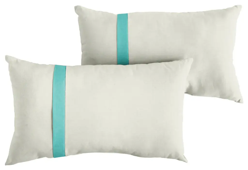 Make the most of your porch or patio by dressing it up with this adorable set of two lumbar pillows! Featuring a gorgeous solid fabric in a rich, ivory hue, this pillow set will help style out your space and make you enjoy the outdoors so much more! Crafted out of a performance material right here in North America, these pillows are built to withstand all of the sun, stains and weather that comes your way. Sunbrella is founded on the belief that fabrics should be both beautiful and functional. We began in the 1960s with the challenge of creating an awning canvas with a substantially longer lifespan than cotton. Sunbrella has become widely adopted for shade structures, marine canvas and upholstery fabric for both outdoor and indoor applications.Our textiles are made with close attention to design detail, and engineered with robust performance characteristics that provide resistance to fading and degradation from sunlight and chemical exposure. The fabric is tactile yet durable, has industry-leading environmental characteristics, is easy to care for and offers long life wherever it''s used.No Sunbrella manufacturing facility in the world sends waste to landfills. A result of our focus on efficiency, this monumental achievement allows Sunbrella to lead by example, putting sustainability into practice every day across the globe. Our unique coloring process not only makes Sunbrella fabrics fade-resistant, it also conserves more water than conventional dyeing processes. At Sunbrella we believe it''s important to preserve the environment around our facilities. We work to conserve the plant and animal life that is native to the area and encourage our employees to plant gardens designed to provide fresh food and nourish local wildlife.We stand behind our fabrics with a guarantee that''s the best in the industry: a 5-year limited warranty for upholstery. This warranty protects the original purchaser of Sunbrella fabric. This warranty protects against Sunbrella fabric becoming unserviceable due to color or strength loss from normal usage and exposure conditions, including sunlight, mildew and atmospheric chemicals.• Ideal for casual indoor and outdoor use• Includes two (2) lumbar pillows• • • • • Made in North America•
