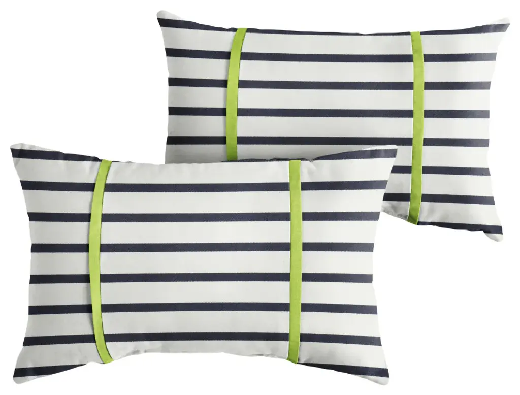 Make the most of your porch or patio by dressing it up with this adorable set of two lumbar pillows! Featuring a gorgeous stripe fabric in a rich, multi color hue, this pillow set will help style out your space and make you enjoy the outdoors so much more! Crafted out of a performance material right here in North America, these pillows are built to withstand all of the sun, stains and weather that comes your way. Sunbrella is founded on the belief that fabrics should be both beautiful and functional. We began in the 1960s with the challenge of creating an awning canvas with a substantially longer lifespan than cotton. Sunbrella has become widely adopted for shade structures, marine canvas and upholstery fabric for both outdoor and indoor applications.Our textiles are made with close attention to design detail, and engineered with robust performance characteristics that provide resistance to fading and degradation from sunlight and chemical exposure. The fabric is tactile yet durable, has industry-leading environmental characteristics, is easy to care for and offers long life wherever it''s used.No Sunbrella manufacturing facility in the world sends waste to landfills. A result of our focus on efficiency, this monumental achievement allows Sunbrella to lead by example, putting sustainability into practice every day across the globe. Our unique coloring process not only makes Sunbrella fabrics fade-resistant, it also conserves more water than conventional dyeing processes. At Sunbrella we believe it''s important to preserve the environment around our facilities. We work to conserve the plant and animal life that is native to the area and encourage our employees to plant gardens designed to provide fresh food and nourish local wildlife.We stand behind our fabrics with a guarantee that''s the best in the industry: a 5-year limited warranty for upholstery. This warranty protects the original purchaser of Sunbrella fabric. This warranty protects against Sunbrella fabric becoming unserviceable due to color or strength loss from normal usage and exposure conditions, including sunlight, mildew and atmospheric chemicals.• Ideal for casual indoor and outdoor use• Includes two (2) lumbar pillows• • • • • Made in North America•