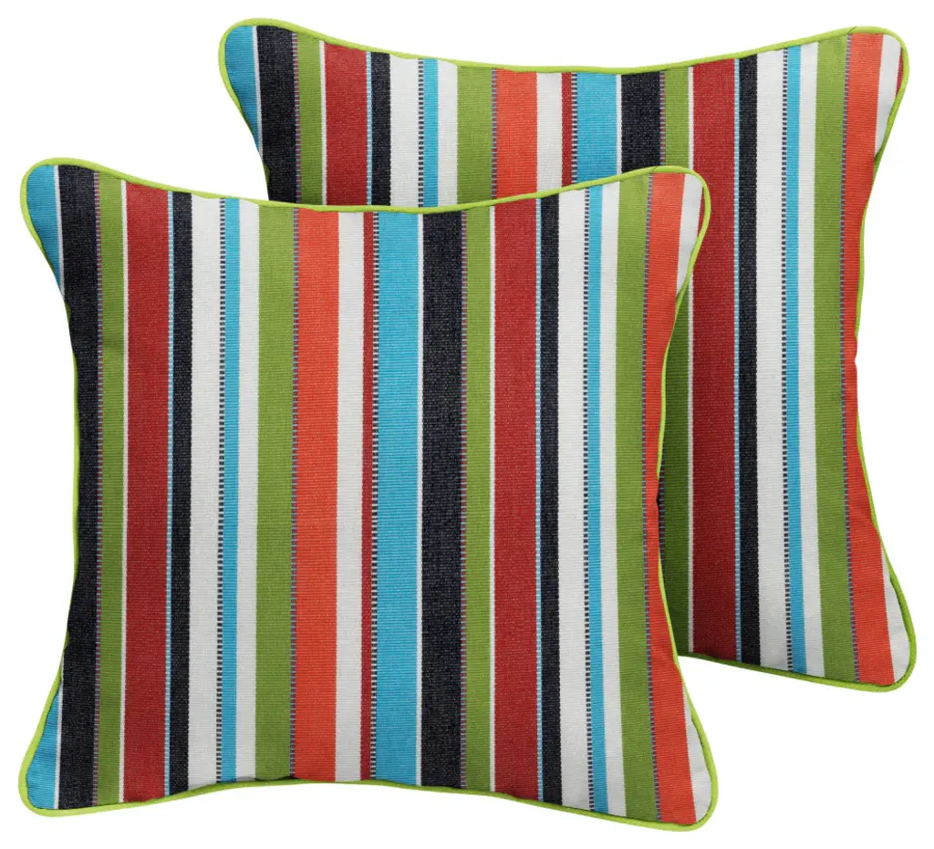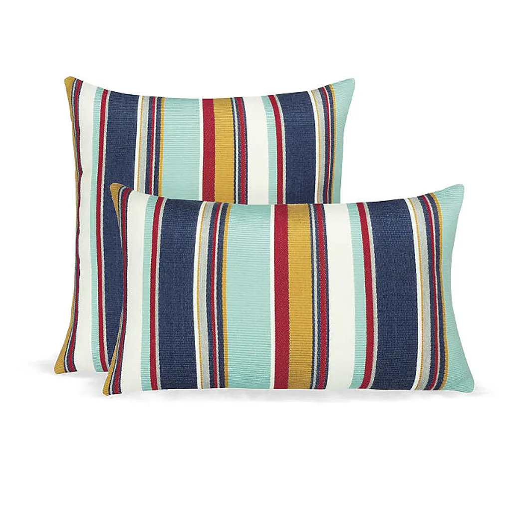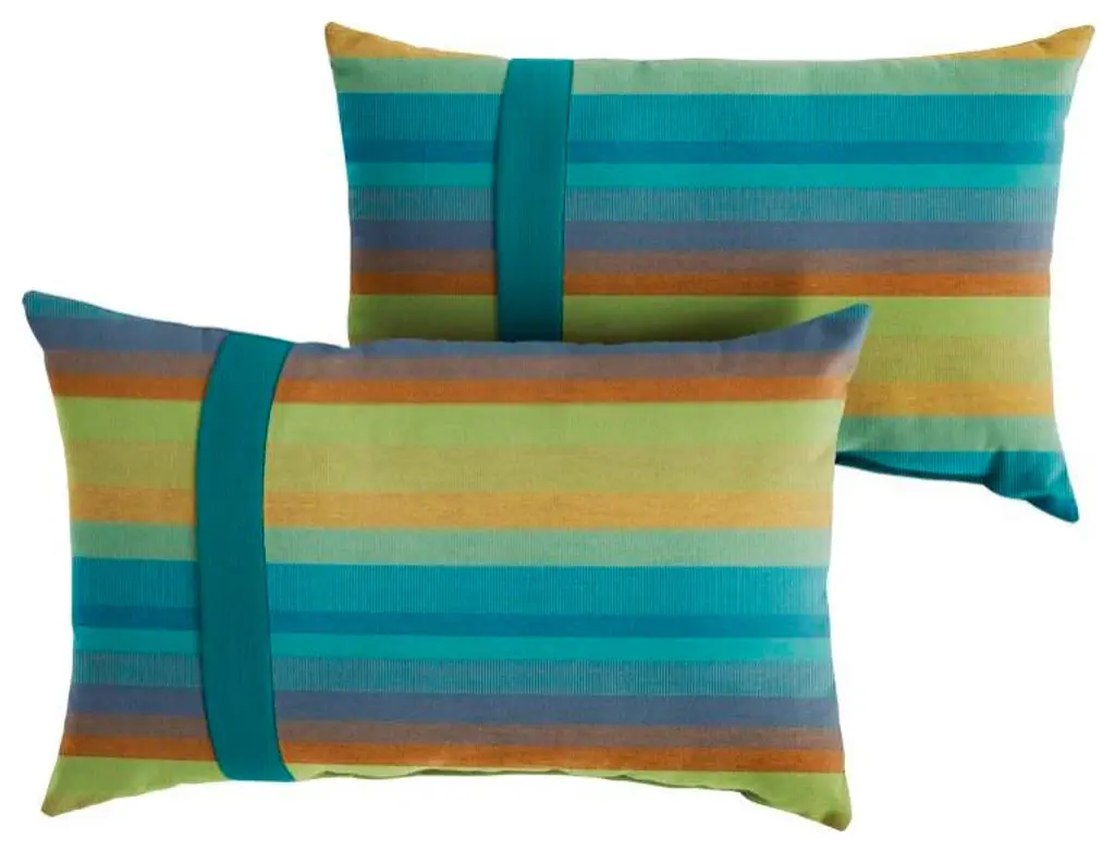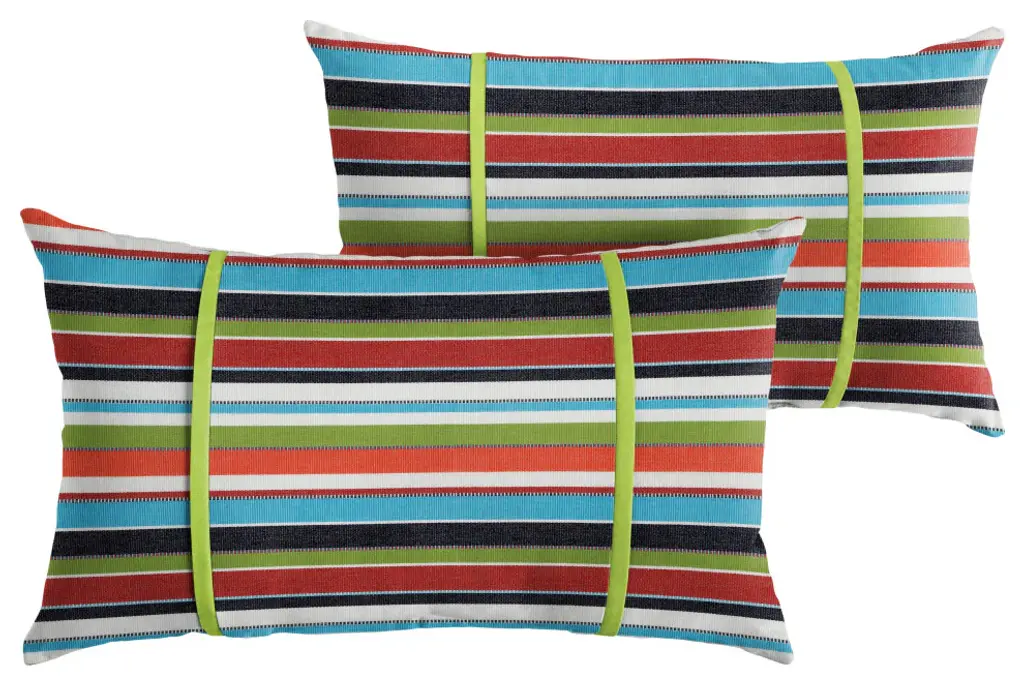 Make the most of your porch or patio by dressing it up with this adorable set of two lumbar pillows! Featuring a gorgeous stripe fabric in a rich, multi color hue, this pillow set will help style out your space and make you enjoy the outdoors so much more! Crafted out of a performance material right here in North America, these pillows are built to withstand all of the sun, stains and weather that comes your way. Sunbrella is founded on the belief that fabrics should be both beautiful and functional. We began in the 1960s with the challenge of creating an awning canvas with a substantially longer lifespan than cotton. Sunbrella has become widely adopted for shade structures, marine canvas and upholstery fabric for both outdoor and indoor applications.Our textiles are made with close attention to design detail, and engineered with robust performance characteristics that provide resistance to fading and degradation from sunlight and chemical exposure. The fabric is tactile yet durable, has industry-leading environmental characteristics, is easy to care for and offers long life wherever it''s used.No Sunbrella manufacturing facility in the world sends waste to landfills. A result of our focus on efficiency, this monumental achievement allows Sunbrella to lead by example, putting sustainability into practice every day across the globe. Our unique coloring process not only makes Sunbrella fabrics fade-resistant, it also conserves more water than conventional dyeing processes. At Sunbrella we believe it''s important to preserve the environment around our facilities. We work to conserve the plant and animal life that is native to the area and encourage our employees to plant gardens designed to provide fresh food and nourish local wildlife.We stand behind our fabrics with a guarantee that''s the best in the industry: a 5-year limited warranty for upholstery. This warranty protects the original purchaser of Sunbrella fabric. This warranty protects against Sunbrella fabric becoming unserviceable due to color or strength loss from normal usage and exposure conditions, including sunlight, mildew and atmospheric chemicals.• Ideal for casual indoor and outdoor use• Includes two (2) lumbar pillows• • • • • Made in North America•