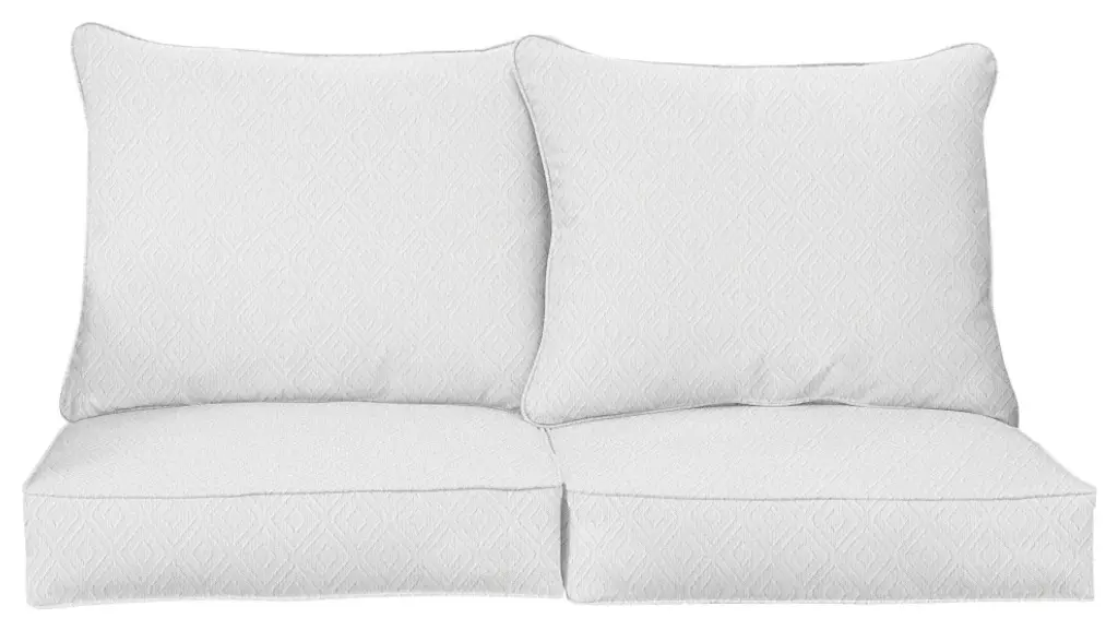 Soak in the sunshine on your porch or patio with the help of this cozy loveseat pillow and cushion set! Featuring a timeless fabric, this pillow set is sure to add style to your space and make you enjoy the outdoors so much more! Crafted out of a performance material right here in North America, these pillows are built to withstand sun, stains and weather so that you can enjoy them worry-free! Sunbrella is founded on the belief that fabrics should be both beautiful and functional. We began in the 1960s with the challenge of creating an awning canvas with a substantially longer lifespan than cotton. Sunbrella has become widely adopted for shade structures, marine canvas and upholstery fabric for both outdoor and indoor applications.Our textiles are made with close attention to design detail, and engineered with robust performance characteristics that provide resistance to fading and degradation from sunlight and chemical exposure. The fabric is tactile yet durable, has industry-leading environmental characteristics, is easy to care for and offers long life wherever it''s used.No Sunbrella manufacturing facility in the world sends waste to landfills. A result of our focus on efficiency, this monumental achievement allows Sunbrella to lead by example, putting sustainability into practice every day across the globe. Our unique coloring process not only makes Sunbrella fabrics fade-resistant, it also conserves more water than conventional dyeing processes. At Sunbrella we believe it''s important to preserve the environment around our facilities. We work to conserve the plant and animal life that is native to the area and encourage our employees to plant gardens designed to provide fresh food and nourish local wildlife.We stand behind our fabrics with a guarantee that''s the best in the industry: a 5-year limited warranty for upholstery. This warranty protects the original purchaser of Sunbrella fabric. This warranty protects against Sunbrella fabric becoming unserviceable due to color or strength loss from normal usage and exposure conditions, including sunlight, mildew and atmospheric chemicals.• Ideal for casual indoor and outdoor use• Includes two (2) back pillows and two (2) seat cushions• Cushion cover can be removed for easy cleaning. Pillow cover is not removable.• Available in a variety of sizes and colors to ensure that you find the perfect match for your furniture• Pillows and cushions only. Furniture not included.• • Made in North America•