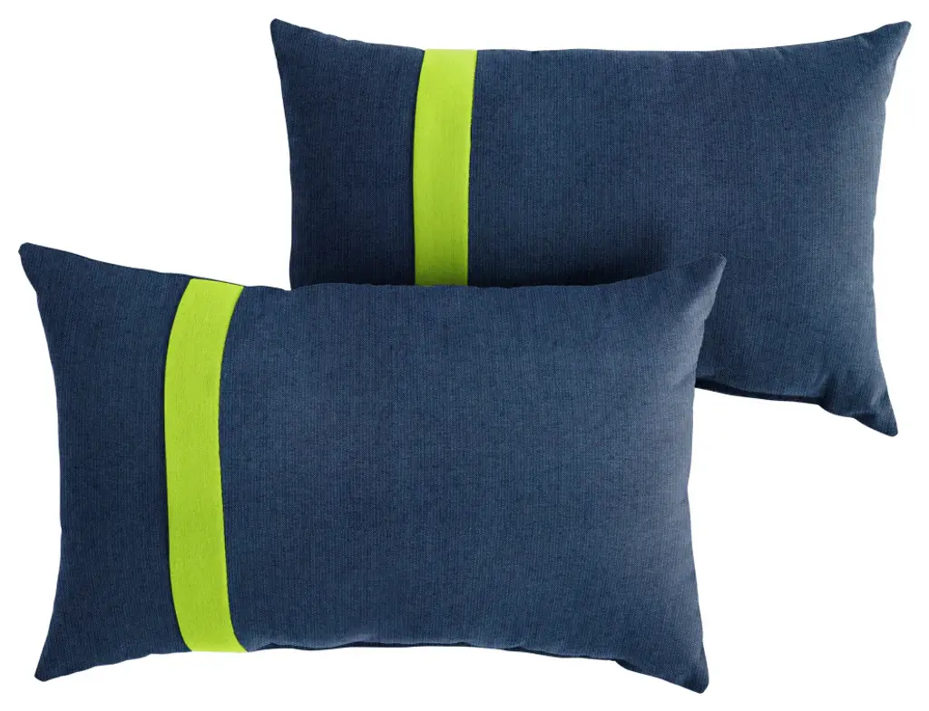 Make the most of your porch or patio by dressing it up with this adorable set of two lumbar pillows! Featuring a gorgeous solid fabric in a rich, blue hue, this pillow set will help style out your space and make you enjoy the outdoors so much more! Crafted out of a performance material right here in North America, these pillows are built to withstand all of the sun, stains and weather that comes your way. Sunbrella is founded on the belief that fabrics should be both beautiful and functional. We began in the 1960s with the challenge of creating an awning canvas with a substantially longer lifespan than cotton. Sunbrella has become widely adopted for shade structures, marine canvas and upholstery fabric for both outdoor and indoor applications.Our textiles are made with close attention to design detail, and engineered with robust performance characteristics that provide resistance to fading and degradation from sunlight and chemical exposure. The fabric is tactile yet durable, has industry-leading environmental characteristics, is easy to care for and offers long life wherever it''s used.No Sunbrella manufacturing facility in the world sends waste to landfills. A result of our focus on efficiency, this monumental achievement allows Sunbrella to lead by example, putting sustainability into practice every day across the globe. Our unique coloring process not only makes Sunbrella fabrics fade-resistant, it also conserves more water than conventional dyeing processes. At Sunbrella we believe it''s important to preserve the environment around our facilities. We work to conserve the plant and animal life that is native to the area and encourage our employees to plant gardens designed to provide fresh food and nourish local wildlife.We stand behind our fabrics with a guarantee that''s the best in the industry: a 5-year limited warranty for upholstery. This warranty protects the original purchaser of Sunbrella fabric. This warranty protects against Sunbrella fabric becoming unserviceable due to color or strength loss from normal usage and exposure conditions, including sunlight, mildew and atmospheric chemicals.• Ideal for casual indoor and outdoor use• Includes two (2) lumbar pillows• • Available in 12 x 24 inch and 13 x 20 inch sizes• • • Made in North America•