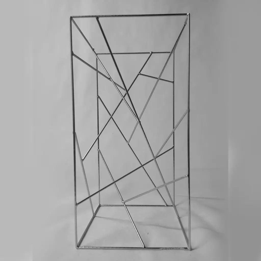 An iconic and thought-provoking piece that will suit modern and minimalist interiors alike, this sculpture interprets the concept of "space" and "perspective" introduced by Renaissance artists like Piero della Francesca. Comprised of an array of converging lines, it is a pure celebration of form. Entirely crafted of metal by master artisans.