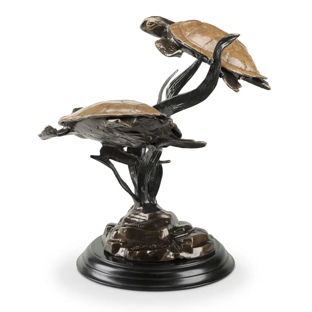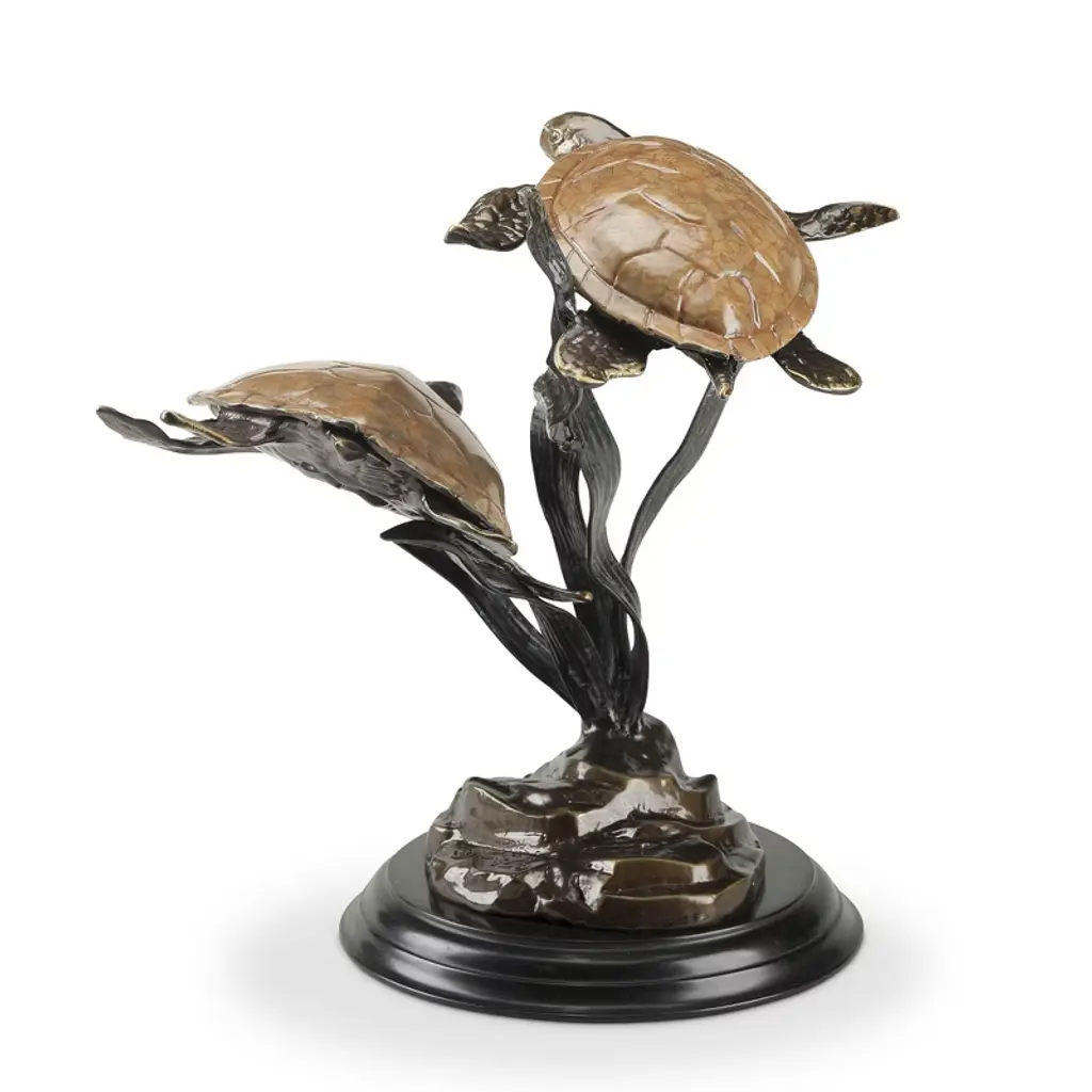 Spi Home Cast Aluminum Sea Grass Tango Sculpture With Double Turtles – Coastal Garden Accent, 17" Tall
