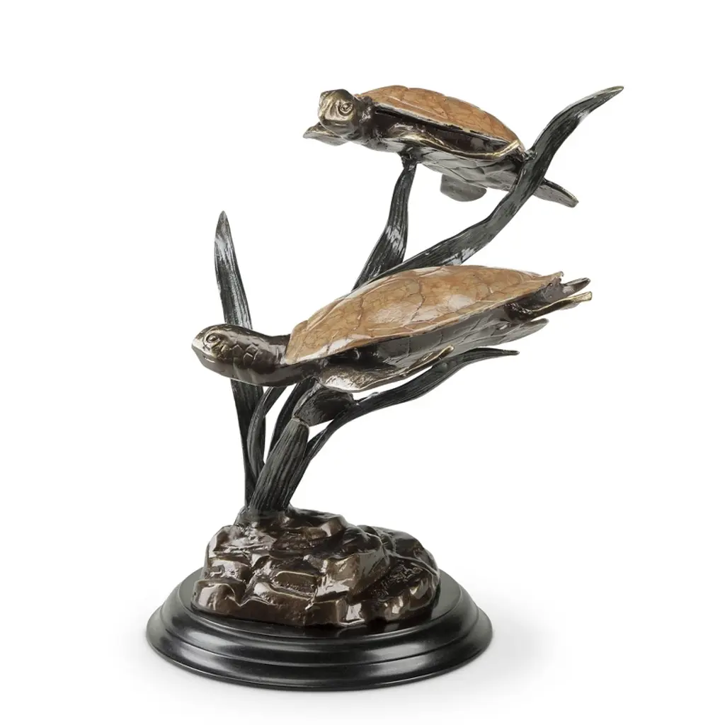 Bring the magic of the ocean to your home or garden with the SPI Home Cast Aluminum Sea Grass Tango sculpture, featuring two graceful sea turtles gliding through sculptural sea grass. This elegant coastal piece stands 17 inches tall, with a width of 14 inches and depth of 12 inches, making it a striking display for patios, entryways, or interior spaces with a beach or marine theme. Crafted from durable metal with a refined aluminum finish, it evokes motion and serenity. Whether placed among plants or on a tabletop, this sculpture captures the rhythm of ocean life in a timeless form. Key Benefits: Enhances coastal or nautical-themed decor indoors or outdoorsMade of cast aluminum for strength, weather resistance, and longevityUnique sea grass and double turtle design creates visual movementCompact yet eye-catching dimensions: 17" × 14" × 12"A thoughtful gift for ocean lovers or coastal home enthusiasts