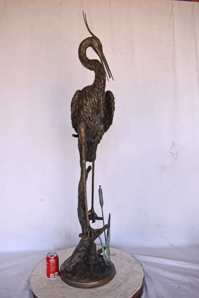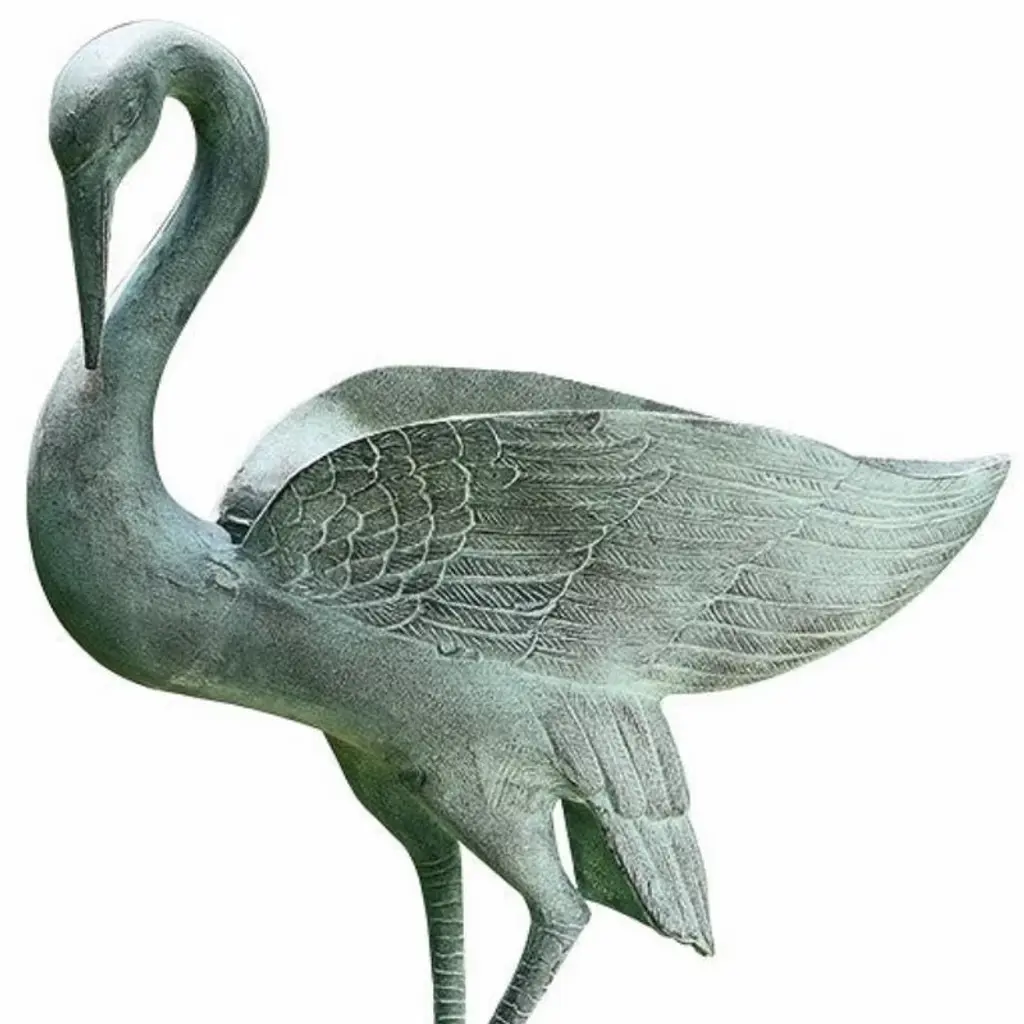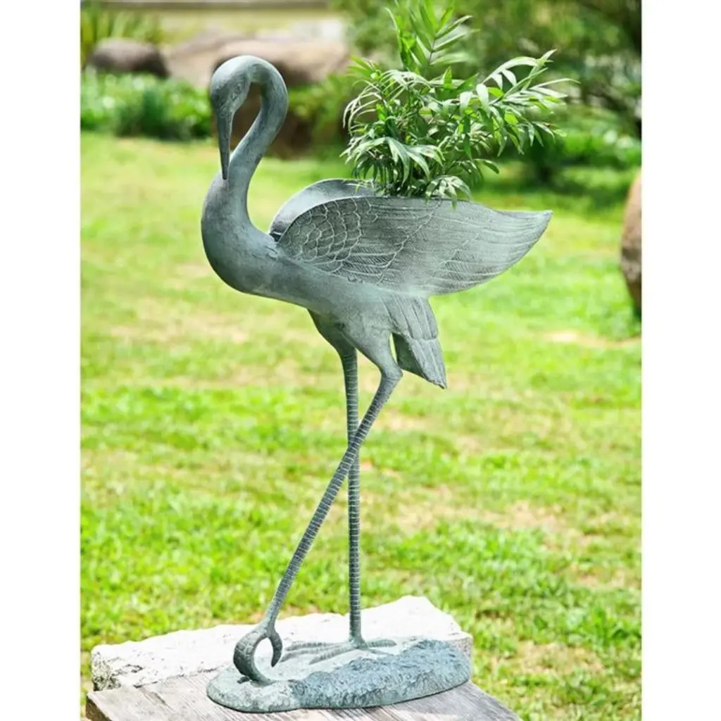 Spi Home Crane Planter Holder – 30" H Bronze Metal Garden Sculpture With Built-in Pot Stand