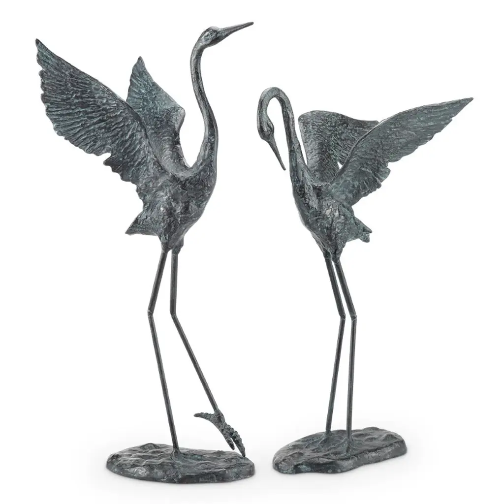 Spi Home Exalted Crane Pair Set Of 2 – 28.5" Tall Cast Iron Garden Sculptures With Elegant Posture, Rustic Outdoor Decor