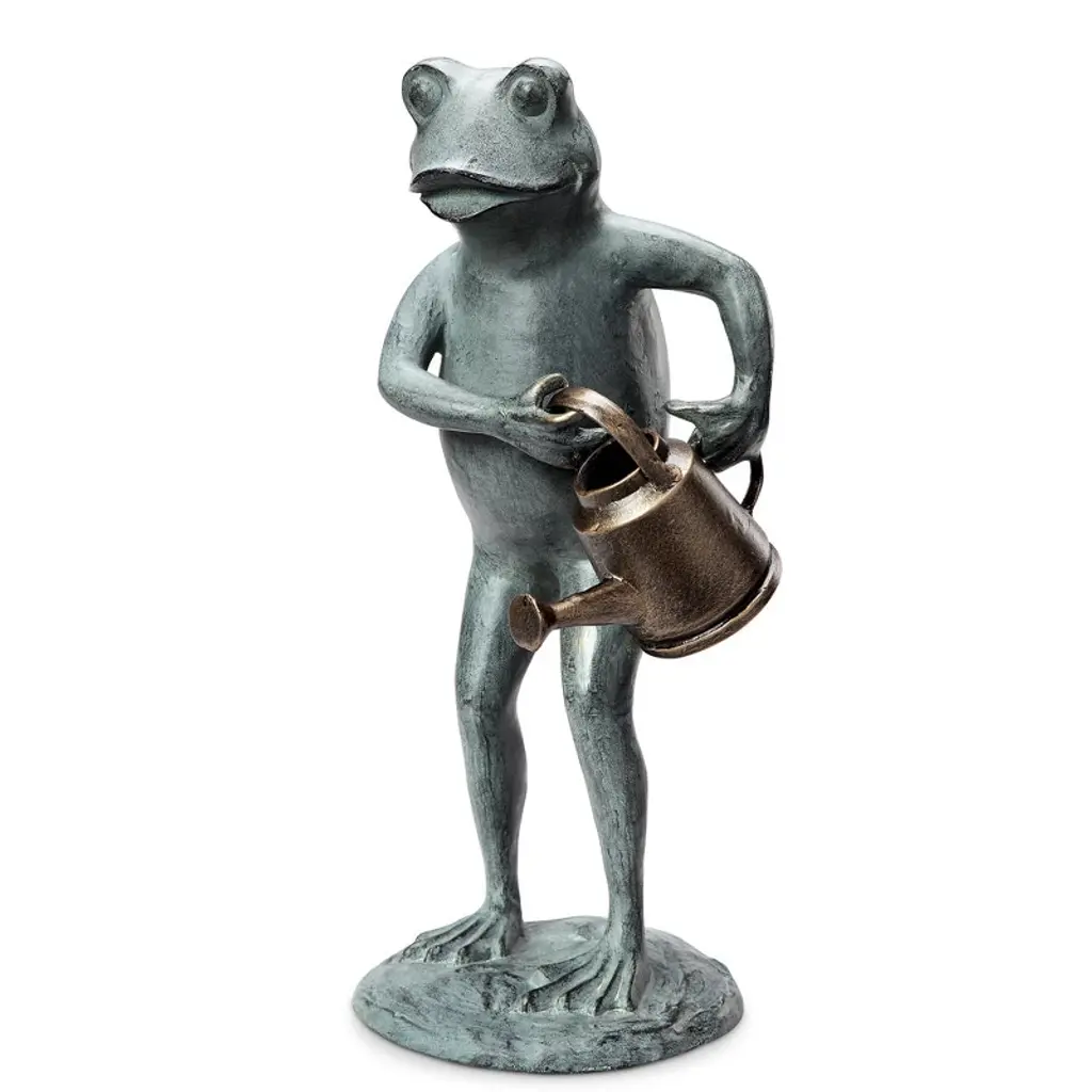 Spi Home Frog With Watering Can Garden Statue – Handcrafted Metal Garden Decor, Whimsical Outdoor Accent