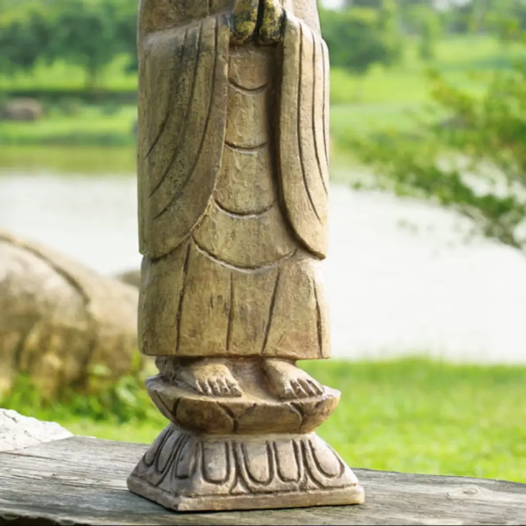 Bring serenity and spiritual elegance to your garden, patio, or meditation space with the SPI Home Meditating Garden Buddha sculpture. Standing 27 inches tall and crafted from weather-resistant resin, this statue captures a peaceful Buddha figure in a classic seated meditation pose. With finely sculpted robes, serene facial details, and a slender profile, it radiates calm and invites reflection. The narrow footprint (7.5" wide × 5.5" deep) allows for easy placement in indoor corners, entryways, or tucked among foliage outdoors, making it perfect for creating a Zen-inspired sanctuary in any space. Key Benefits: Adds calm and spiritual focus to gardens, patios, or yoga spacesLightweight resin design (7.5 lbs) allows flexible display optionsSlender footprint fits well in compact corners or on garden pedestalsStands tall at 27" for visual impact without overpowering other décorIdeal for mindfulness spaces, entryways, or gifting with intention