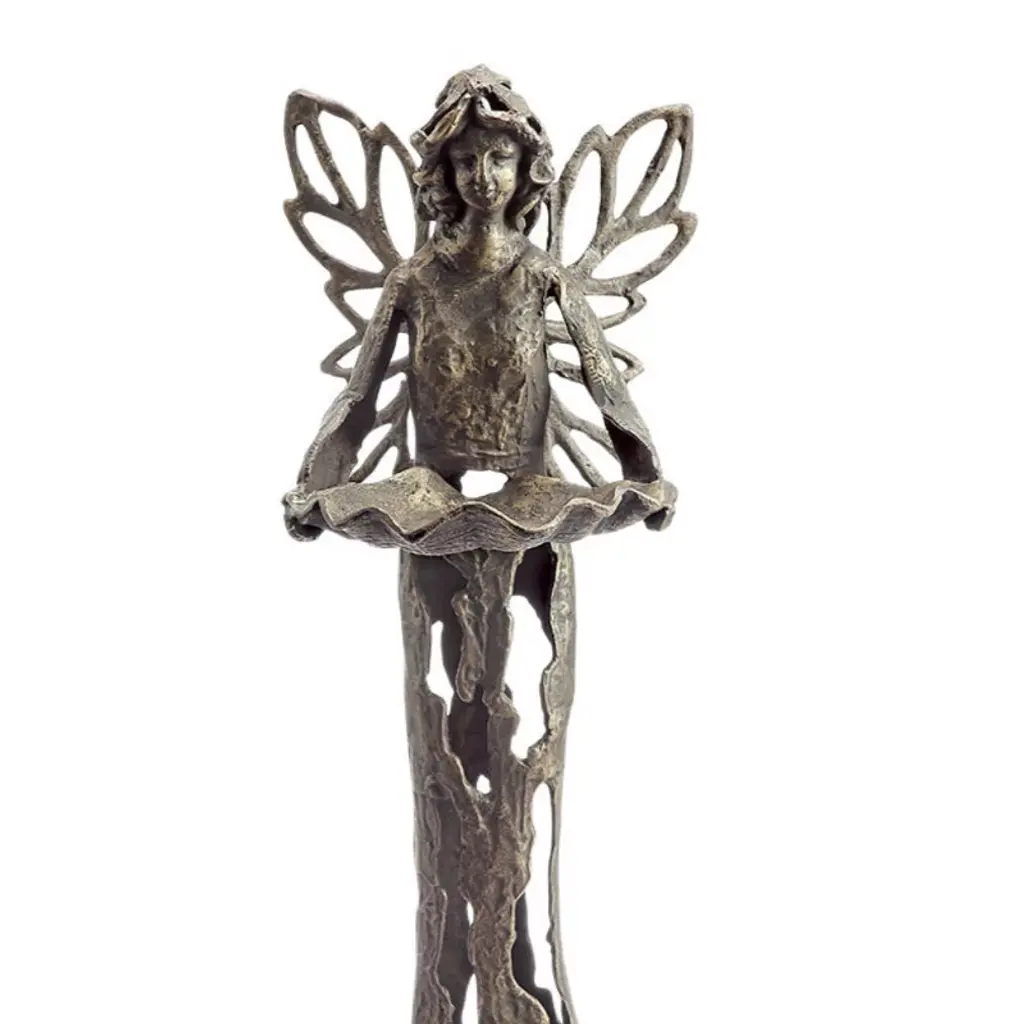 Spi Home Stylized Fairy Birdfeeder In Cast Iron – Whimsical Garden Sculpture With Integrated Feeding Bowl, 26" Tall