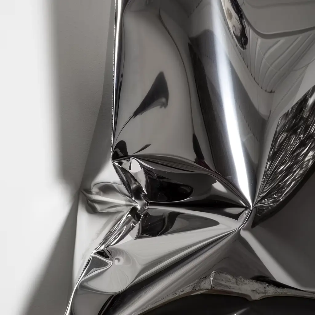 An exclusive addition to contemporary interiors, this stainless steel wall sculpture showcases an artful pillow shape sure to lend walls a compelling playful twist. The crumpled design flaunts stunning reflections while recreating the authentic volume of a fluffy cushion. Multiple variants are available in the Artemest catalog.