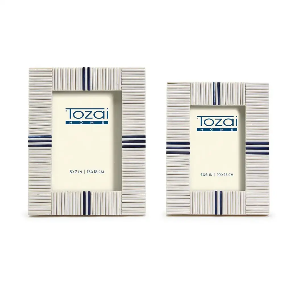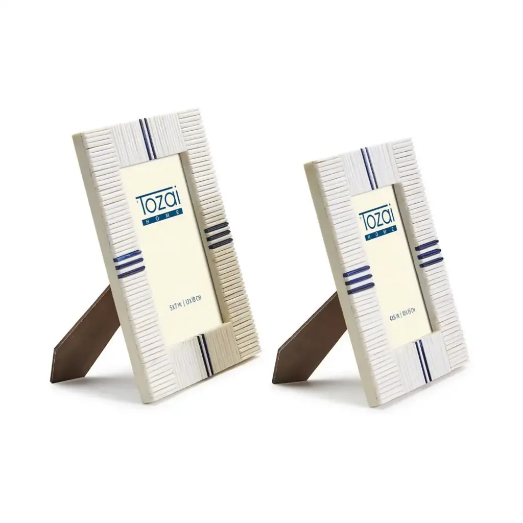 Stacks Set Of 2 Photo Frames With Lapis Colored Inlay (4" X 6", 5" X 7") Bone/glass