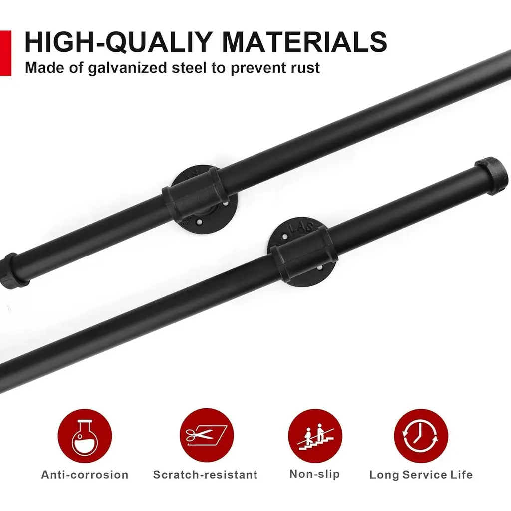 【Robust Steel for Secure Stability】Crafted from high-quality galvanized steel and fortified with a dedicated anti-corrosion coating, our stair handrail indoor ensures long-lasting use. With a load capacity of up to 440 lbs and a 1.25-inch outer diameter, it accommodates various hand sizes, providing a secure and firm grip—especially beneficial for pregnant women, children, and the elderly 【Enduring Durability with Protective Coating】Meticulously constructed from galvanized steel, the hand rails for indoor stairs is enhanced with a specialized anti-corrosion treatment. This ensures long-lasting resilience by preventing bending, scratches, and fading. The protective coating maintains a flawless appearance while extending the product's lifespan 【Modern Design with Versatile Functionality】Boasting a unique industrial modern design, our stair railing not only introduces a touch of style to your home but also caters to a wide array of needs. Whether it's for indoor and outdoor stairs, loft attic railing armrests, bathroom handrails, door handles, toilet bar corridors railings, or even towel and clothes racks, it seamlessly integrates into a diverse range of spaces, making it the perfect addition. 【Effortless Installation & Multiple Choices】The package includes all necessary screws, ensuring a worry-free installation. Designed with DIY enthusiasts in mind, the stair railing indoor allows horizontal, inclined, or vertical installation, offering versatility and simplicity. 【Customized Sizes & Good Service】Lengths: 3-11ft, with 3 wall mount support, distance to the wall: about 3.05 inches. We have different sizes choice to cater to different needs. It's not only a practical choice but also a perfect gift for family and friends. We're committed to delivering exceptional customer experience, ready to answer your queries.