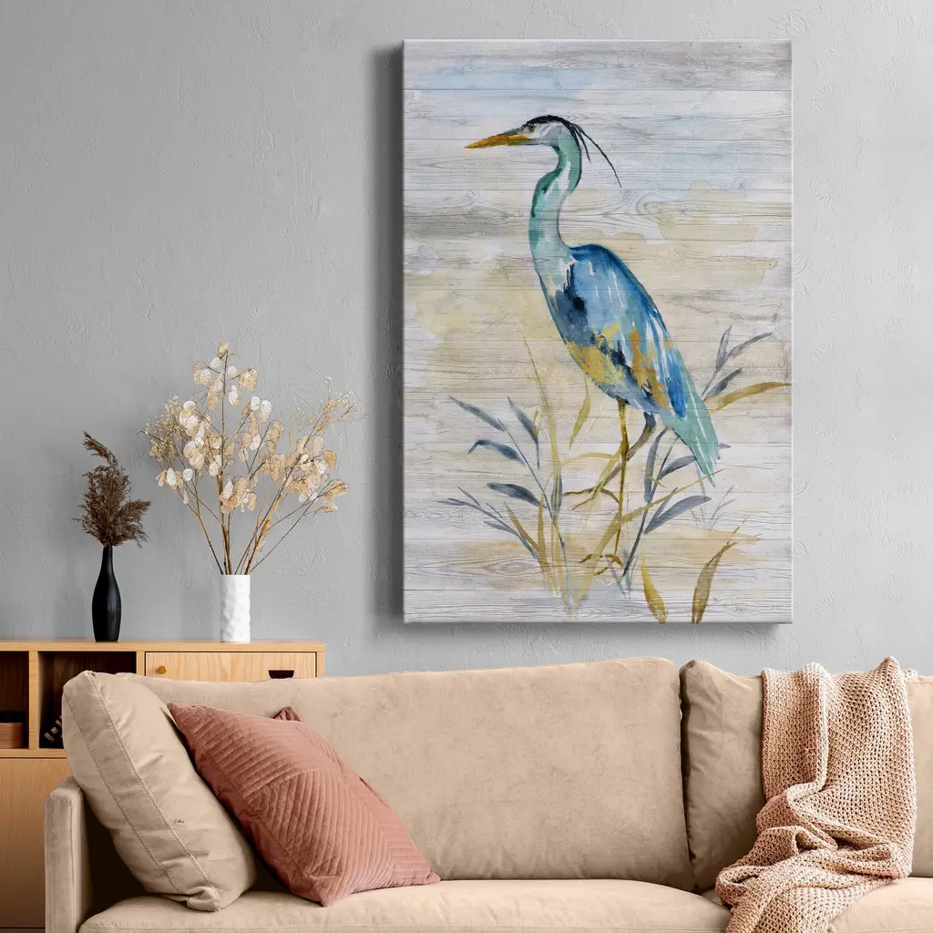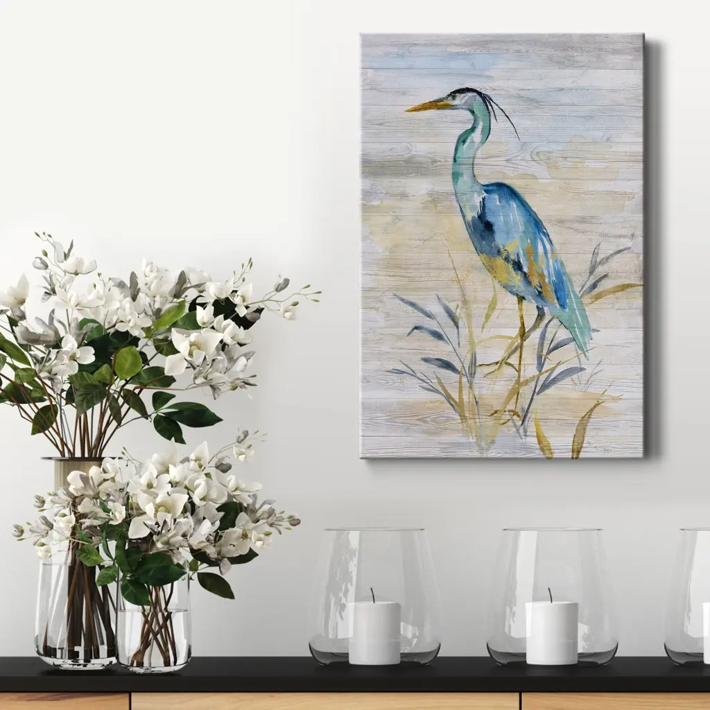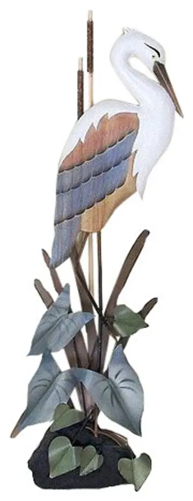 Featuring your favorite shorebird in its natural habitat, this elegant Standing Heron Wall Sculpture makes a charming addition to your beach house decor. Perfect for any room of the home or office, this nature-inspired art piece is both hand carved and hand painted in stunning detail. Set atop a rich black faux slate base, the Standing Heron Wall Sculpture is enhanced with finely crafted metal cattail accents.