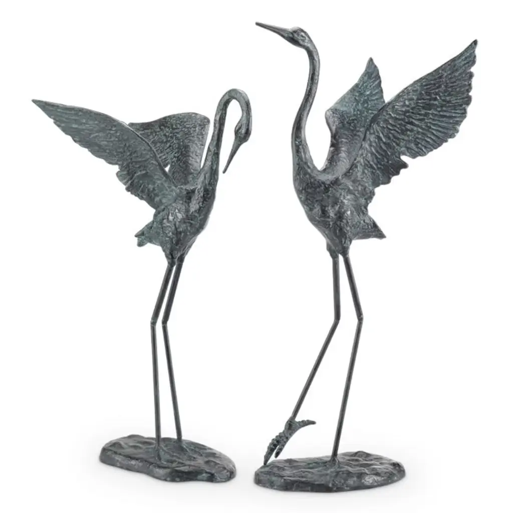 Stately Garden Cranes, Cast Aluminum Sculpture Set Of 2