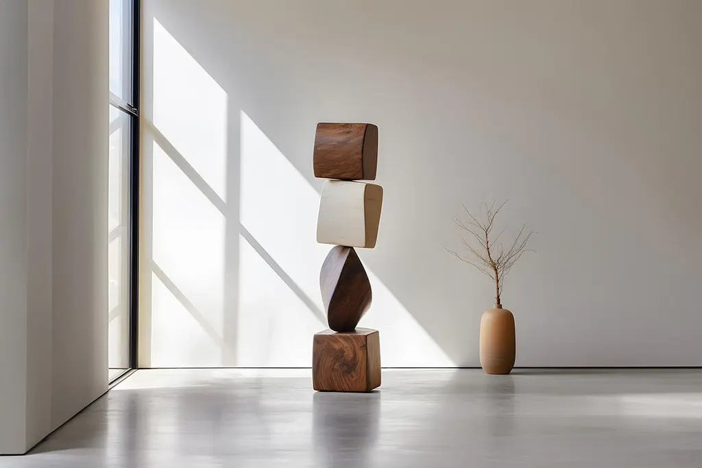 Still Stand No34: Tranquil Oak Totem Sculpture By Nono, Escalona Designed