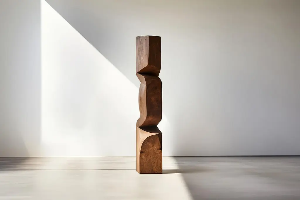 Still Stand No40: Serene Standing Walnut Sculpture, Exquisite Escalona Art
