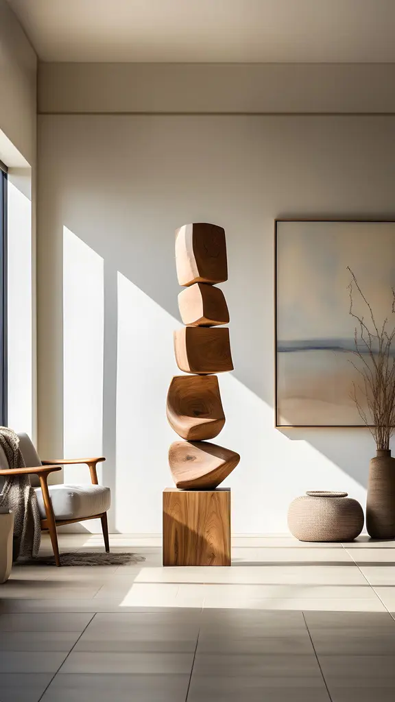 Still Stand No76: Biomorphic Carved Oak Totem By Nono, Escalona Crafted