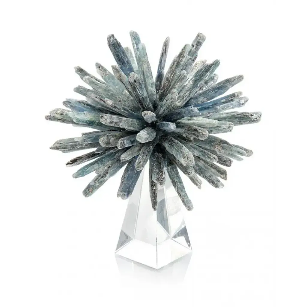 A myriad of beautiful natural stones, including quartz, yellow quartz, calcite, geodes, and gold-plated tourmaline, creates this cluster resting on a crystal base. This outstanding piece looks as if it has burst from the heavens.