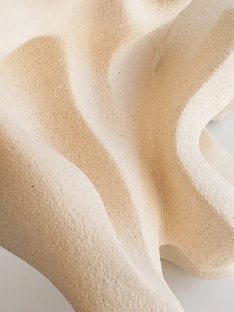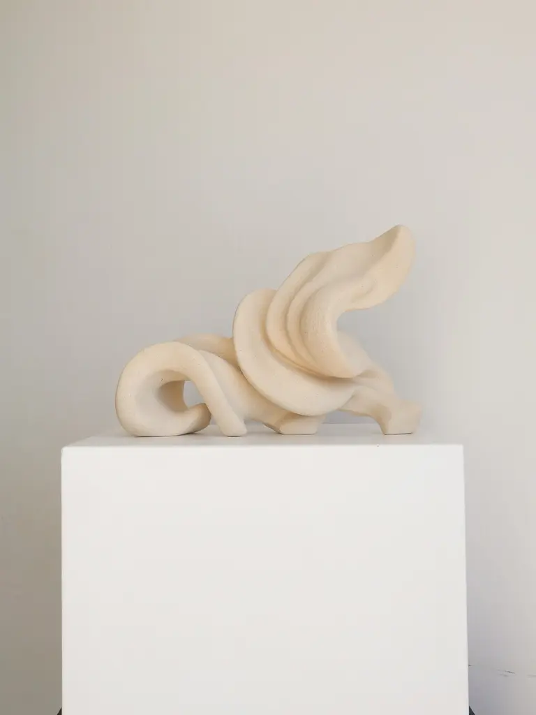 Stoneware Clay, Ceramic Floating Echo Sculpture by Aleksandra KrasnopolskaDimensions: W 29.5 x D 16.3 x H 11.3 cmMaterials: Stoneware clay. Unglazed ceramic sulface.Weight: 1,6 kg.Collection: “The Way In”Aleksandra Krasnopolska is a contemporary artist from Odessa, Ukraine. Aleksandra worked as an architect and interior designer before turning to sculpture. When she picked up clay for the first time, she fell in love with the material. "The most amazing thing is how easy and beautiful I did it the first time, how pleasant and facile the clay was," she says. "It was love at first touch!" Krasnopolska's sculptures are biomorphic, seeming to slide and shift as you walk around them. Krasnopolska's work evokes the beautiful female form, as well as the waves of the Black Seas, where Aleksandra draws so much of her inspiration. The sculptures are made using a process that the artist refers to as "flow art." Every piece is a form of meditation.