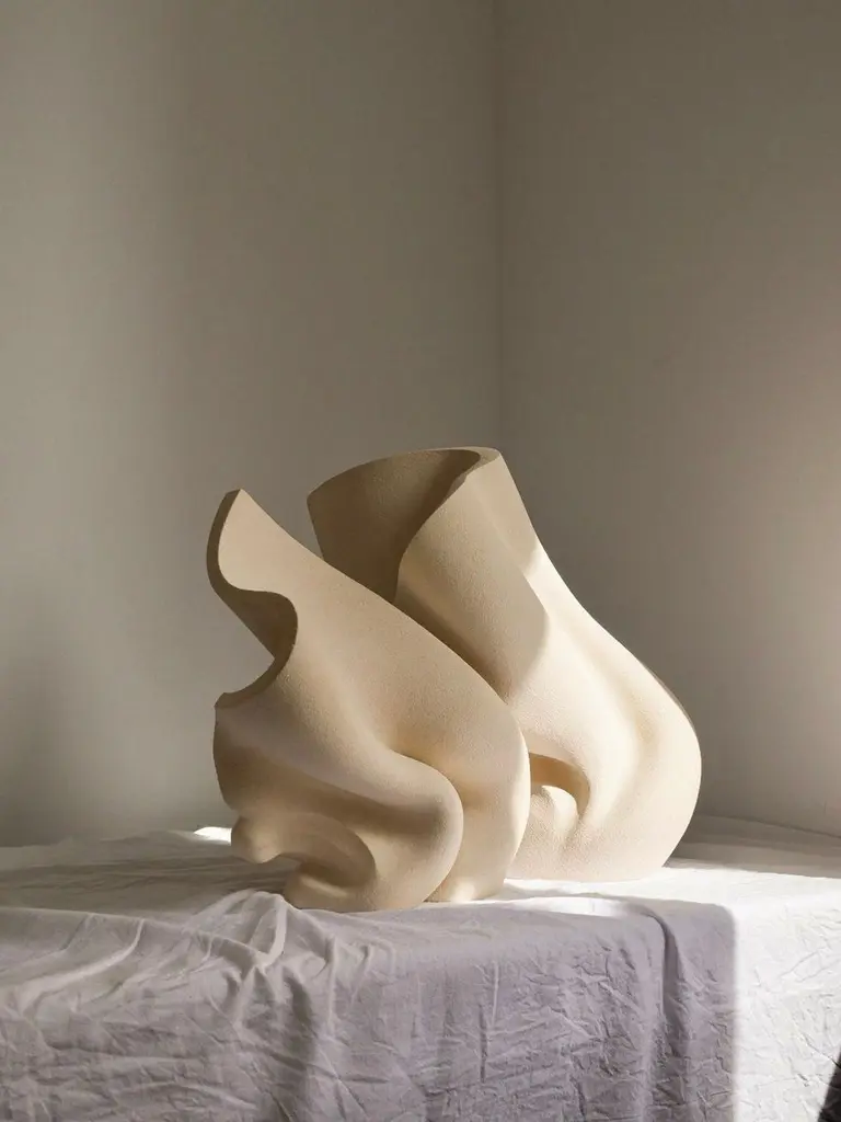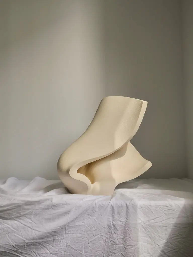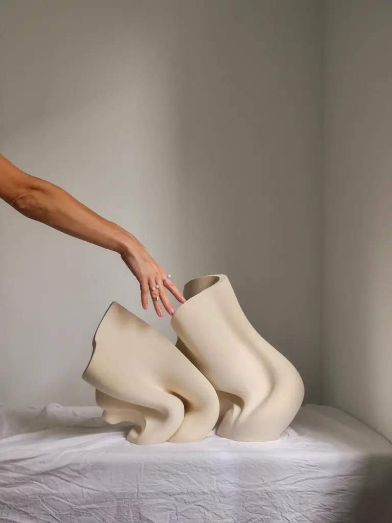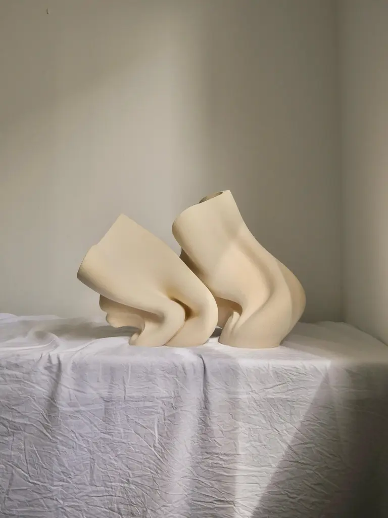 Stoneware Clay, Ceramic The Wind of Change Sculpture by Aleksandra KrasnopolskaDimensions: W 31 x D 20 x H 35 cm, W 28.5 x D 15 x H 30 cmMaterials: Stoneware clay. Unglazed ceramic sulface.Weight: 6 kg and 3,6 kg.Collection: The Wind of ChangeAleksandra Krasnopolska is a contemporary artist from Odessa, Ukraine. Aleksandra worked as an architect and interior designer before turning to sculpture. When she picked up clay for the first time, she fell in love with the material. "The most amazing thing is how easy and beautiful I did it the first time, how pleasant and facile the clay was," she says. "It was love at first touch!" Krasnopolska's sculptures are biomorphic, seeming to slide and shift as you walk around them. Krasnopolska's work evokes the beautiful female form, as well as the waves of the Black Seas, where Aleksandra draws so much of her inspiration. The sculptures are made using a process that the artist refers to as "flow art." Every piece is a form of meditation.