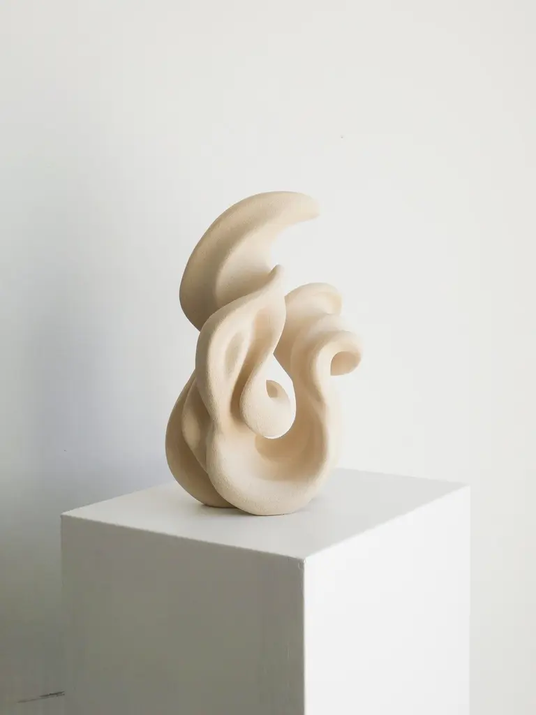 Stoneware Clay, Unglazed Ceramic Ethereal Sculpture by Aleksandra KrasnopolskaDimensions: W 25.5 x D 19 x H 35 cmMaterials: Stoneware clay. Unglazed ceramic sulface.Weight: 5,6 kg.Collection: “The Way In”Aleksandra Krasnopolska is a contemporary artist from Odessa, Ukraine. Aleksandra worked as an architect and interior designer before turning to sculpture. When she picked up clay for the first time, she fell in love with the material. "The most amazing thing is how easy and beautiful I did it the first time, how pleasant and facile the clay was," she says. "It was love at first touch!" Krasnopolska's sculptures are biomorphic, seeming to slide and shift as you walk around them. Krasnopolska's work evokes the beautiful female form, as well as the waves of the Black Seas, where Aleksandra draws so much of her inspiration. The sculptures are made using a process that the artist refers to as "flow art." Every piece is a form of meditation.