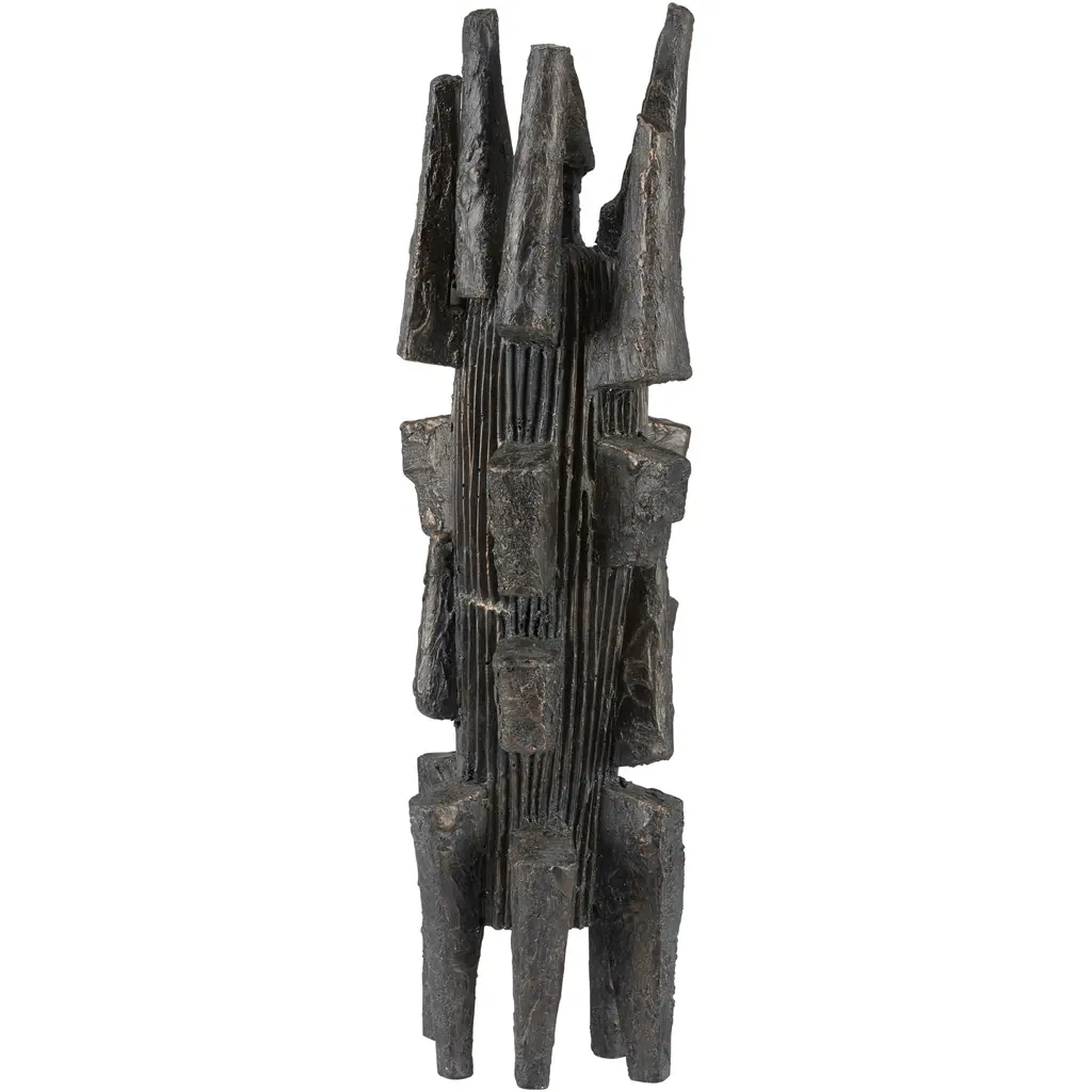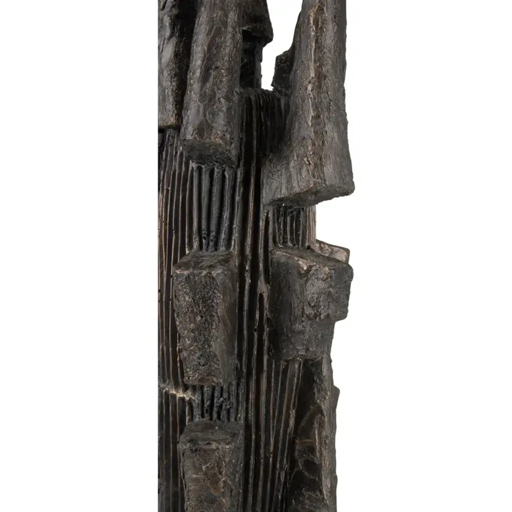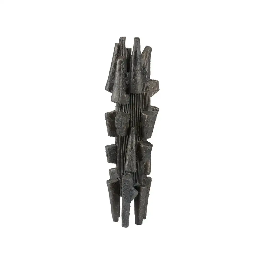 The Strata Sculpture blends metal and resin to create a striking vertical form with layered, architectural texture. Its dark finish and jagged silhouette lend a bold, sculptural presence to any surface or display.