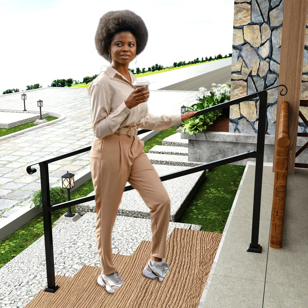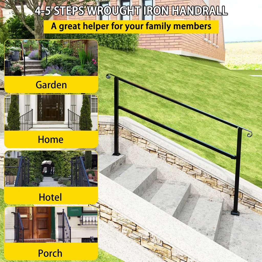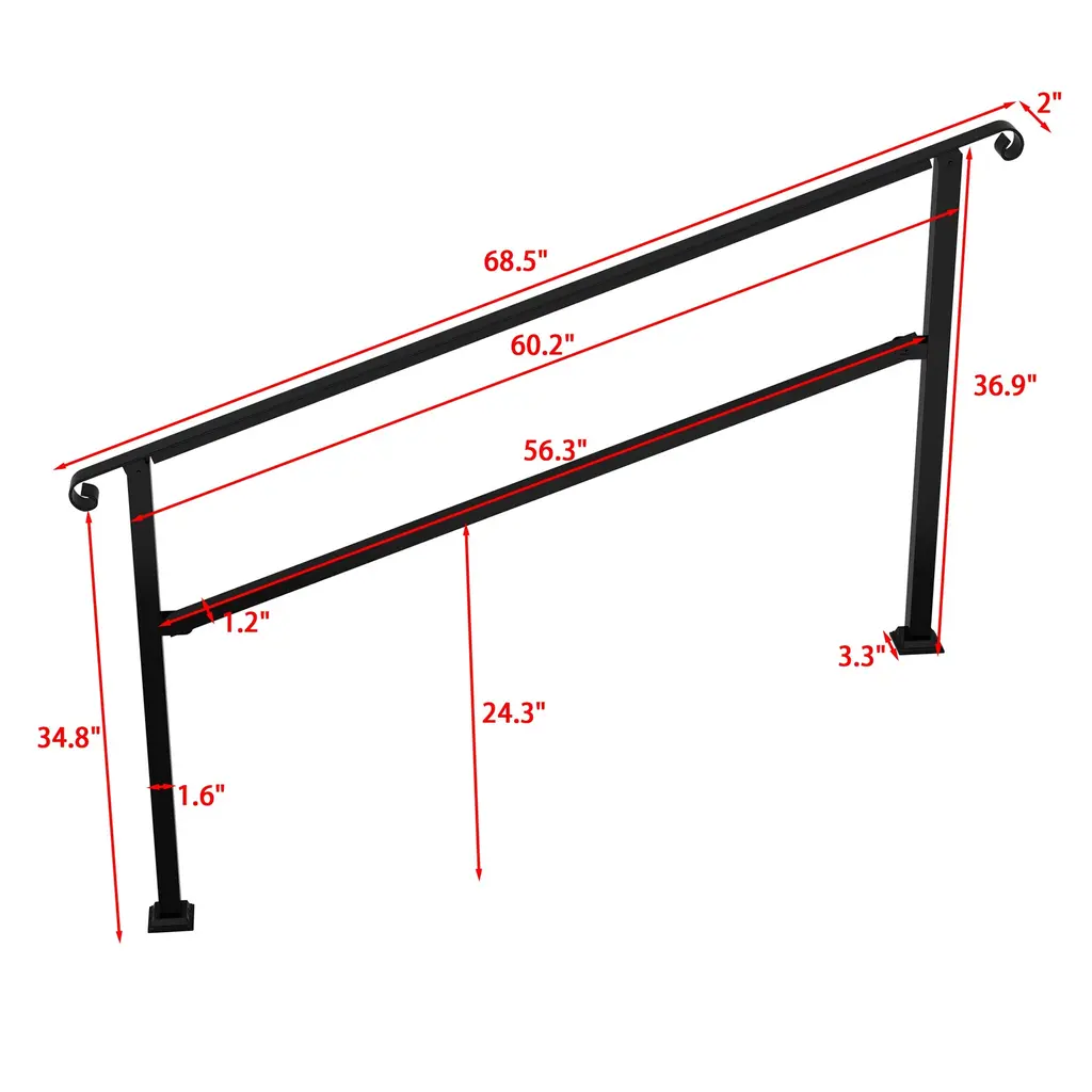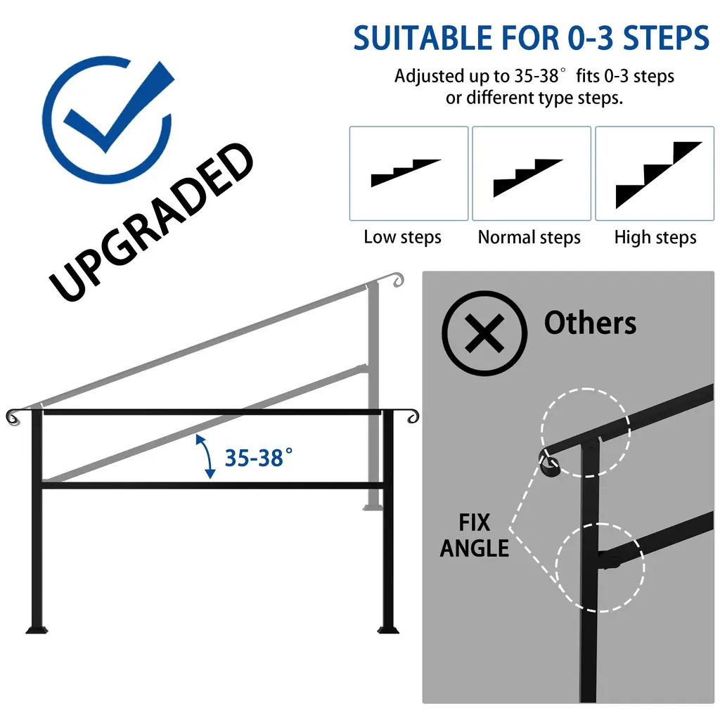 Enhance Safety and Style with Our Wrought Iron Handrail for Steps Transform your outdoor spaces with our premium wrought iron handrail, designed to provide both safety and style for steps in gardens, homes, hotels, and porches. Crafted from high-strength, weatherproof wrought iron, this handrail ensures reliable support and longevity. Key Features: High Load-Bearing Capacity: The handrail is built to provide dependable support with a high load-bearing capacity, making it perfect for outdoor use. Durable Construction: Made from robust wrought iron, this handrail is designed to withstand the elements, ensuring it remains sturdy and rust-free over time. Elegant Design: The sleek, black finish and classic design add a touch of elegance to any setting, seamlessly blending with your exterior decor. Large Bearing Base: The handrail features a large bearing base for enhanced stability, preventing any wobbling or shifting during use. Easy Installation: The bottom screw part and included mounting accessories make installation straightforward, allowing you to secure the handrail to various surfaces, including concrete, wood, brick, and mixed materials. Versatile Use: This handrail is ideal for a wide range of applications: Garden: Provide extra support for garden steps, ensuring safety for all visitors. Home: Enhance the safety of your home's entryways and staircases. Hotel: Add a touch of class and safety to hotel entrances and pathways. Porch: Perfect for porches, offering a secure grip for those entering or exiting your home. Available Sizes: Choose from four different sizes to perfectly fit your specific needs: Size 1: 40.9" length, 36.2" height Size 2: 54.3" length, 36.2" height Size 3: 68.5" length, 36.9" height Size 4: 82.1" length, 37" height Refer to the images for detailed measurements to ensure the perfect fit for your steps. Why Choose Our Wrought Iron Handrail? Our handrail not only provides essential safety but also enhances the aesthetic appeal of your property. The weatherproof coating ensures it can withstand harsh outdoor conditions, while the easy-to-clean surface makes maintenance a breeze. With its classic design and durable construction, this handrail is a valuable addition to any outdoor space.