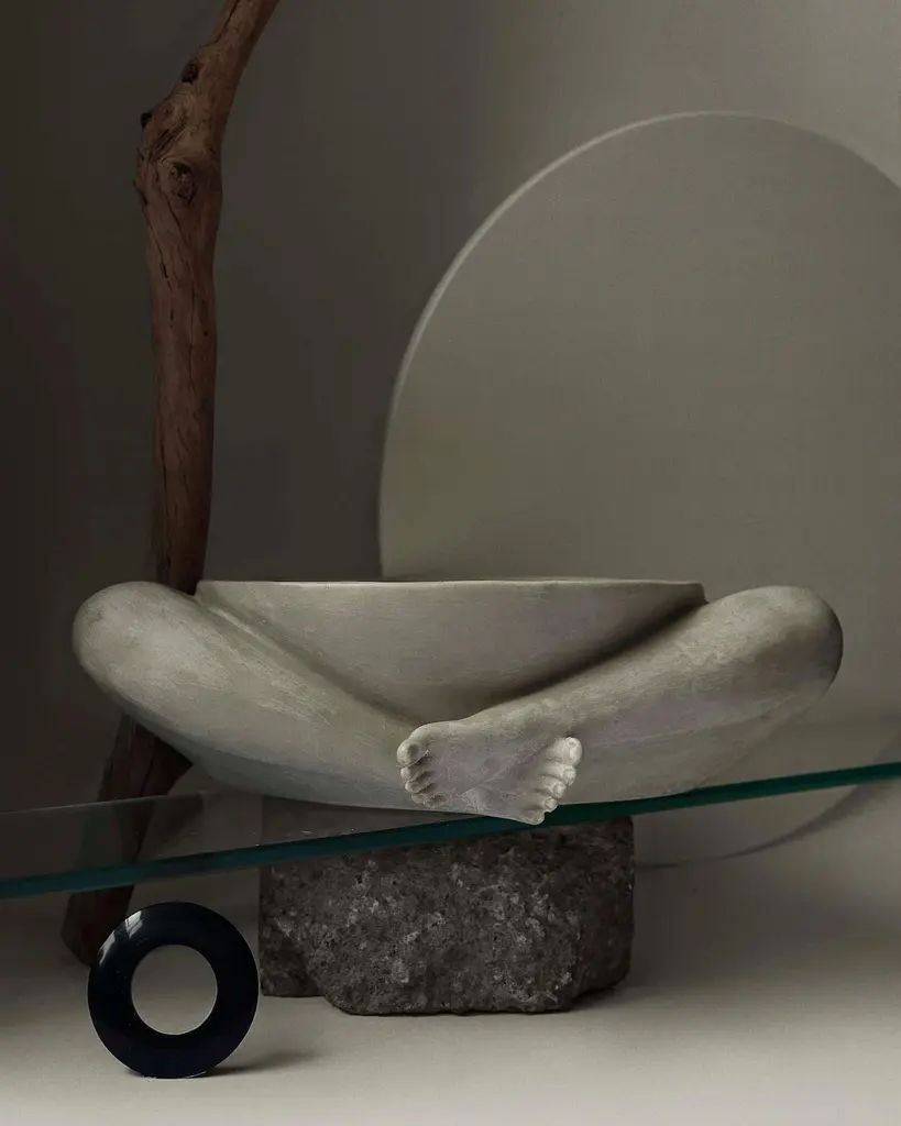Sukhasana II bowl by Marcela Cure.Dimensions: W 40.5 x D 28 x H 13 cm.Materials: resin and stone composite.Our Sukhasana II is our bowl version of our Sukhasana sculpture, inspired by the calming pose commonly used for meditation and practicing breathing exercises. It can be used by itself or with elements like plants, fruits, etc.This collection is inspired by the seducing form of the human body. Pieces that speak for themselves. The pieces in this collection are carefully hand-sculpted in clay and later hand cast in a mixture of resin and stone.Marcela Cure is an interior designer from Barranquilla, Colombia, who, in addition to designing contemporary spaces with a Latin Punch, creates exquisite hand-sculpted art objects in materials sourced from the earth.Inspired by the creative legacy of her late mother, a renowned plastic artist, Marcela dedicated herself to designing her own spaces with such impeccable taste and creativity, that friends and family began to comission her design projects. It was at the end of 2015 that "Marcela Cure" was established as an interior design firm focused on contemporary and luxury projects, from which modern, cheerful spaces with an evident Latin American spirit are proposed, as well as contemporary art objects.