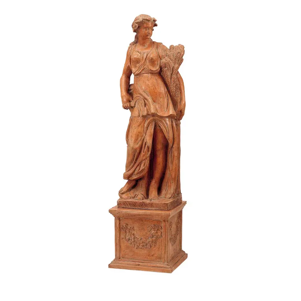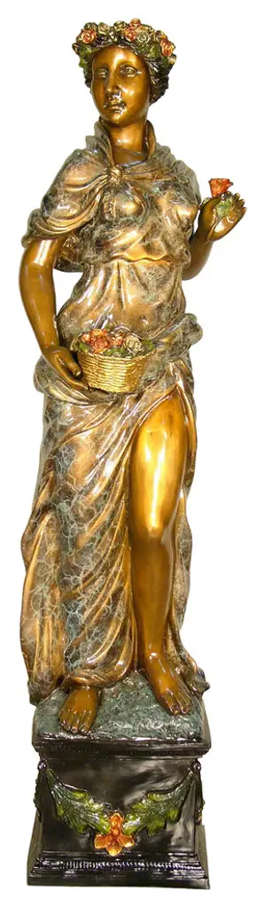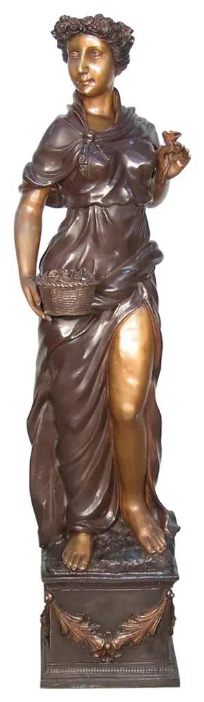 The "4 Seasons Maiden" sculpture (Summer) symbolizes all that is in bloom. Consider adding the Spring, Fall, and Winter styles for a complete set. Finished in verdigris and bronze patina.