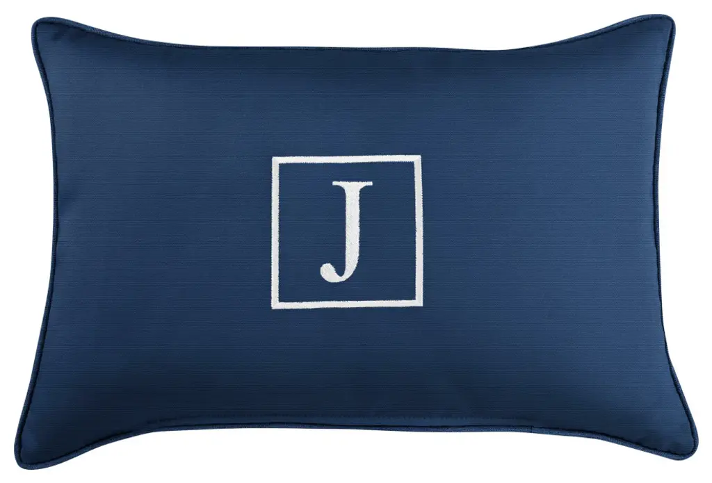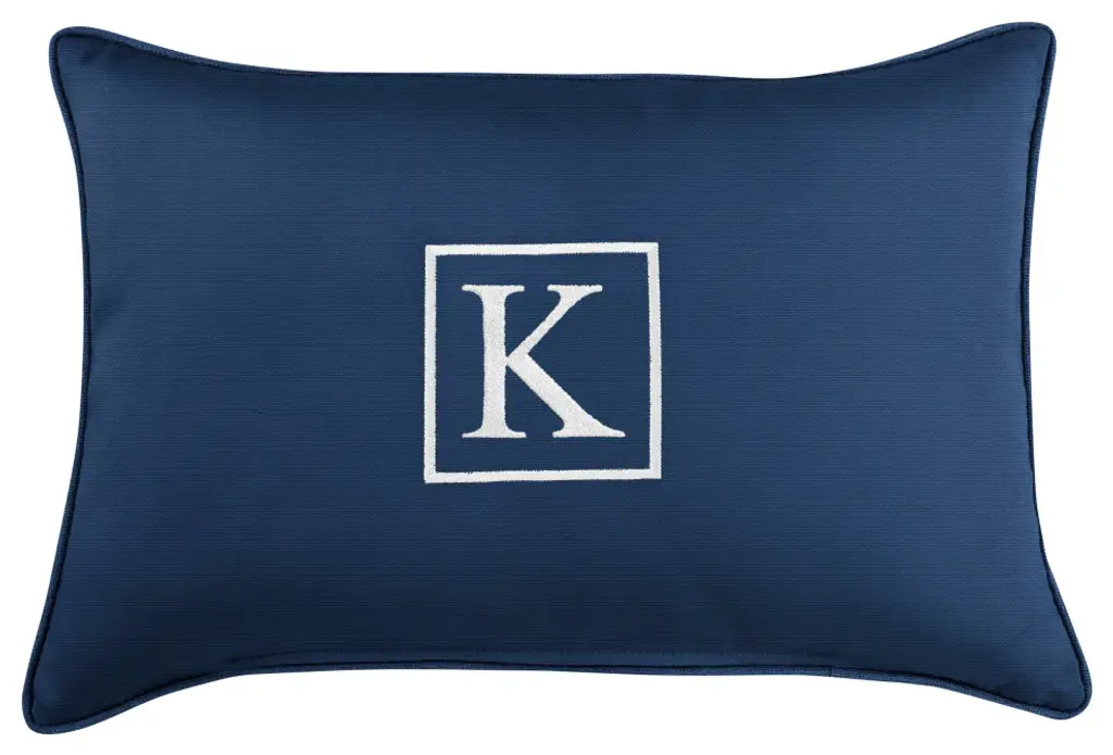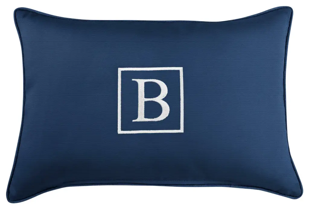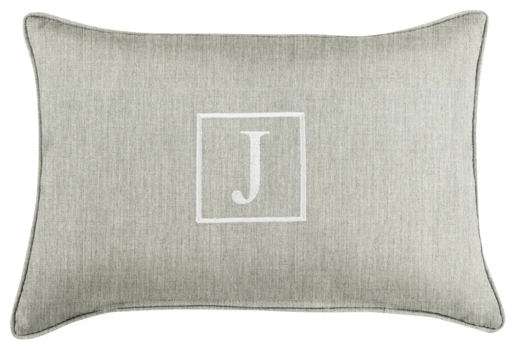 Sunbrella Embroidered Pillow 13"hx20"wx6"d, Canvas Granite, Monogram"q"