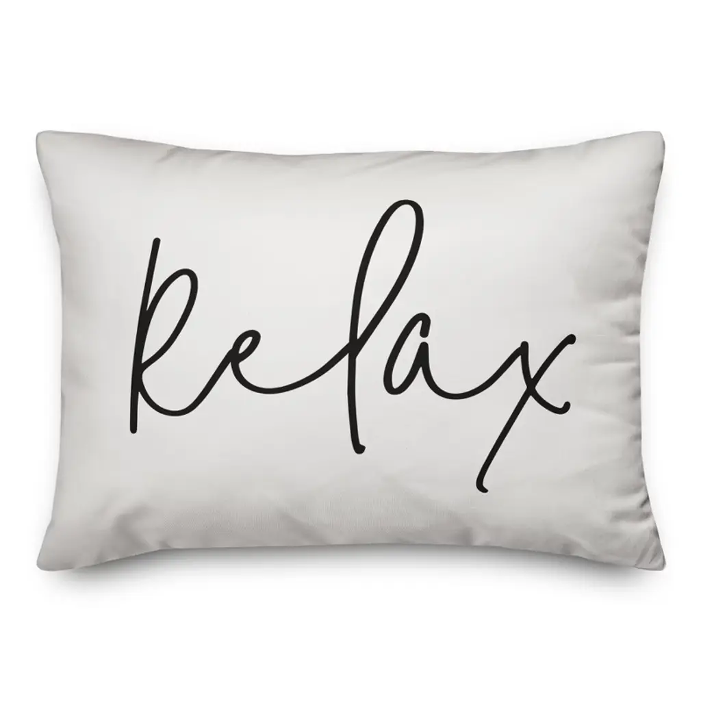Sunbrella Embroidered Pillow 13"hx20"wx6"d, Canvas Natural, Relax