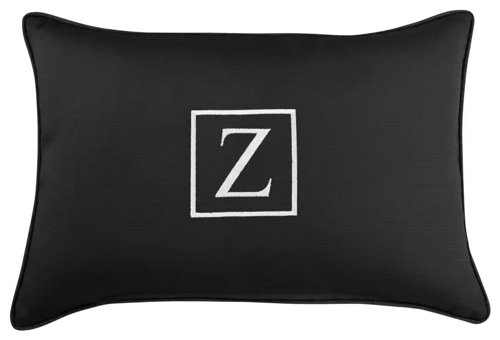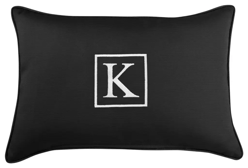 Sunbrella Embroidered Pillow 13"hx20"wx6"d, Canvas Navy, Monogram"k"