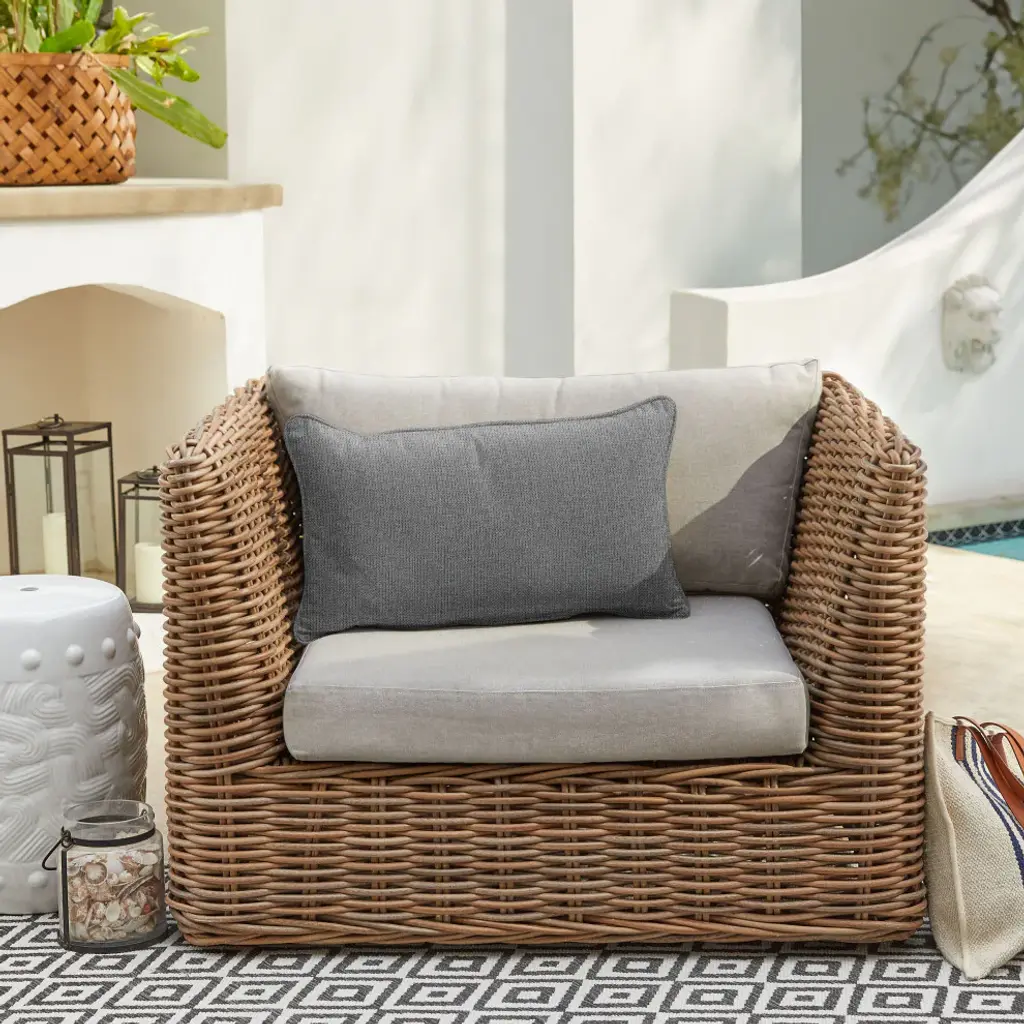 Take advantage of your porch or patio and start sprucing it up with this adorable pillow! Featuring a gorgeous fabric, this pillow will brighten your space and help you enjoy the outdoors so much more! Crafted out of a performance material right here in North America, this pillow is built to withstand all of the sun, stains and weather that comes your way. Sunbrella is founded on the belief that fabrics should be both beautiful and functional. We began in the 1960s with the challenge of creating an awning canvas with a substantially longer lifespan than cotton. Sunbrella has become widely adopted for shade structures, marine canvas and upholstery fabric for both outdoor and indoor applications.Our textiles are made with close attention to design detail, and engineered with robust performance characteristics that provide resistance to fading and degradation from sunlight and chemical exposure. The fabric is tactile yet durable, has industry-leading environmental characteristics, is easy to care for and offers long life - wherever it''s used.No Sunbrella manufacturing facility in the world sends waste to landfills. A result of our focus on efficiency, this monumental achievement allows Sunbrella to lead by example, putting sustainability into practice every day across the globe. Our unique coloring process not only makes Sunbrella fabrics fade-resistant, it also conserves more water than conventional dyeing processes. At Sunbrella we believe it''s important to preserve the environment around our facilities. We work to conserve the plant and animal life that is native to the area and encourage our employees to plant gardens designed to provide fresh food and nourish local wildlife.We stand behind our fabrics with a guarantee that''s the best in the industry: a 5-year limited warranty for upholstery. This warranty protects the original purchaser of Sunbrella fabric. This warranty protects against Sunbrella fabric becoming unserviceable due to color or strength loss from normal usage and exposure conditions, including sunlight, mildew and atmospheric chemicals.• Ideal for casual indoor and outdoor use• Includes one (1) lumbar pillow• • Available in a variety of sizes and colors to ensure that you find the perfect match for your furniture• Pillow only. Furniture not included.• • Made in North America•